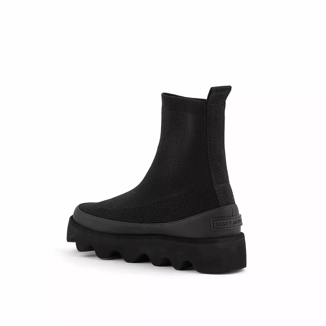 The Bounce Fit Boot is aimed to reflect one of Issey Miyake’s core concepts – comfort. This ankle boot features a chunky outsole that is both light and flexible, and a textile upper. This style features tonal leather detailing, a pull tab at the heel for easy dressing, and features an Issey Miyake logo at the heel.