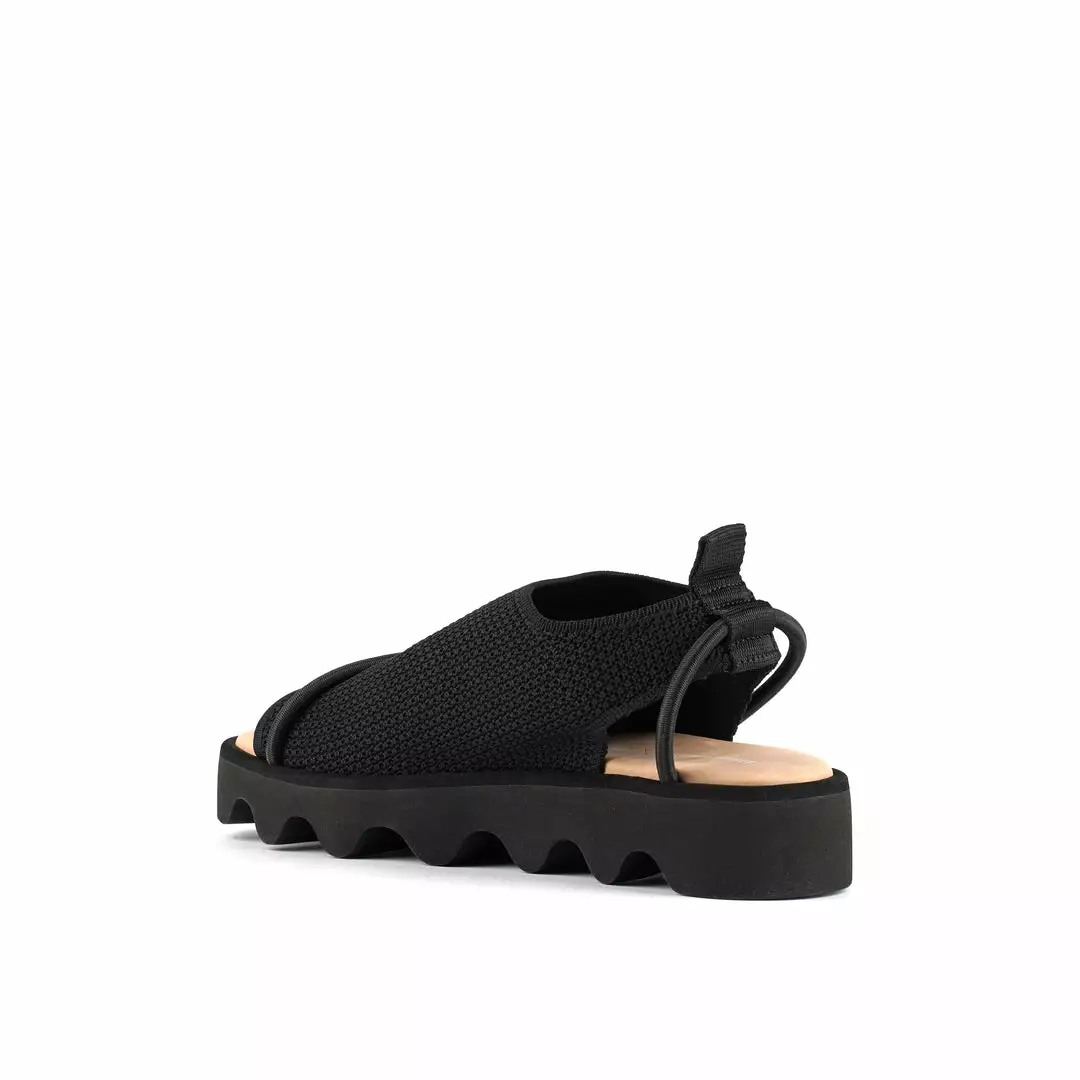 The Bind is a pull-on sandal grounded by a chunky, undulating sole. Tonal elastic bands encompass the soft knit upper while the heel tab offers easy on and off wear. Includes additional ankle straps that can be looped through the heel tab and wrapped around the ankle for the best fit.