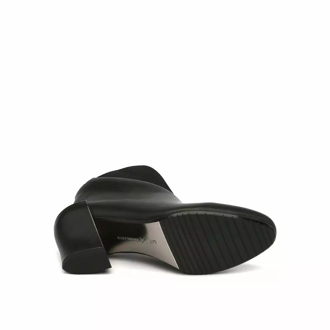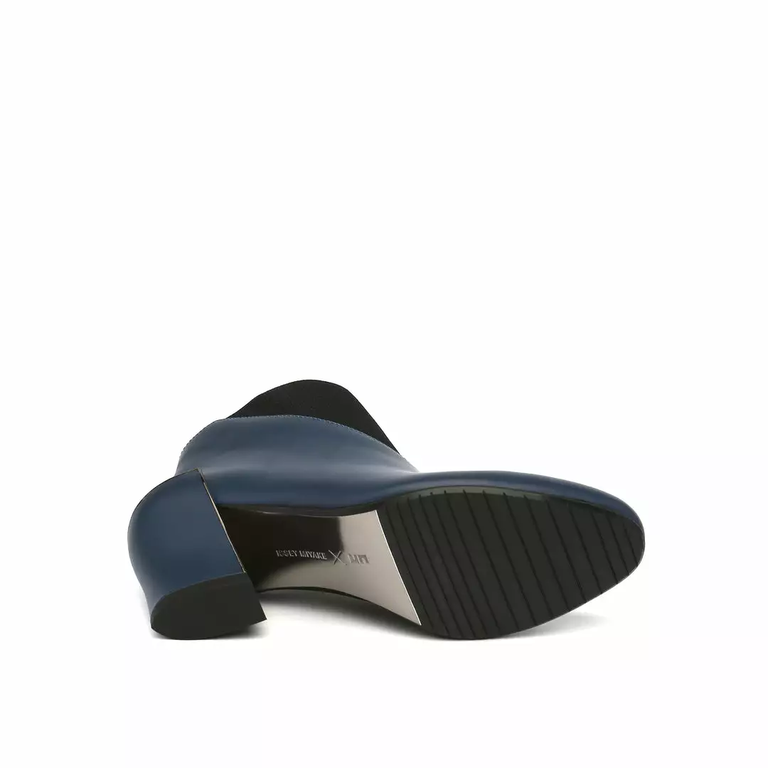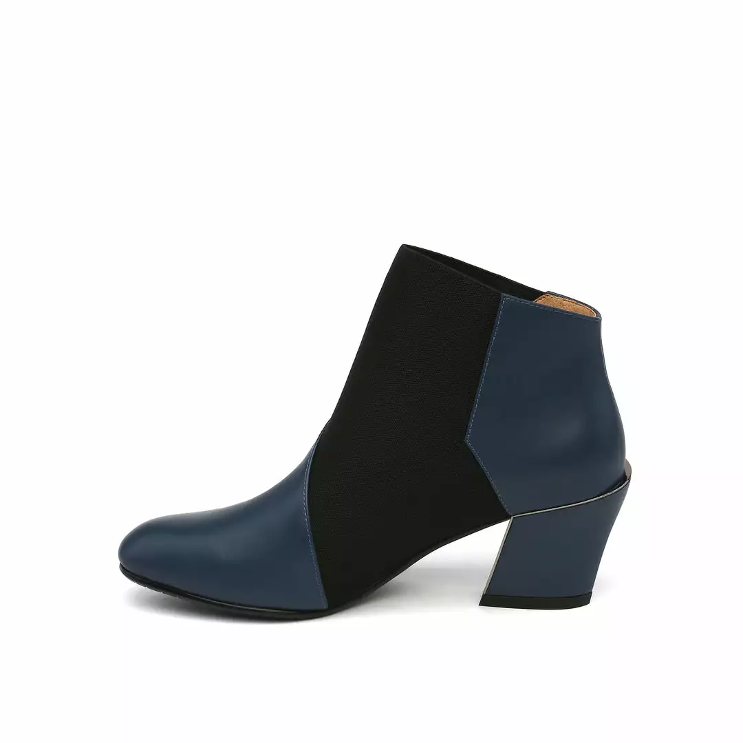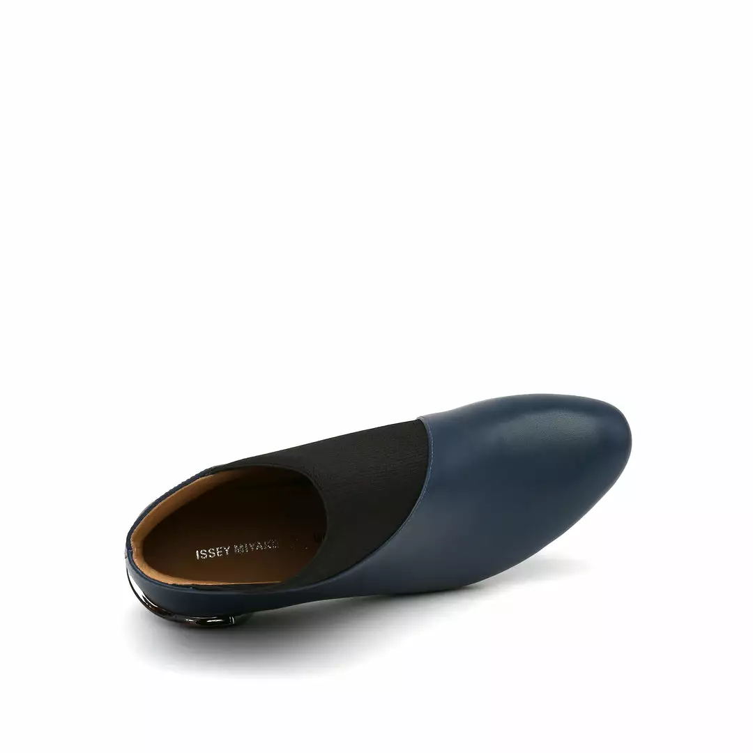 The Wrap Bootie Mid is a mid heel bootie with a soft curving chromed block heel. The wrap was designed with the concept of enveloping the foot with a single sheet of leather. An elastic band is entwined in the upper for easy on and off wear.