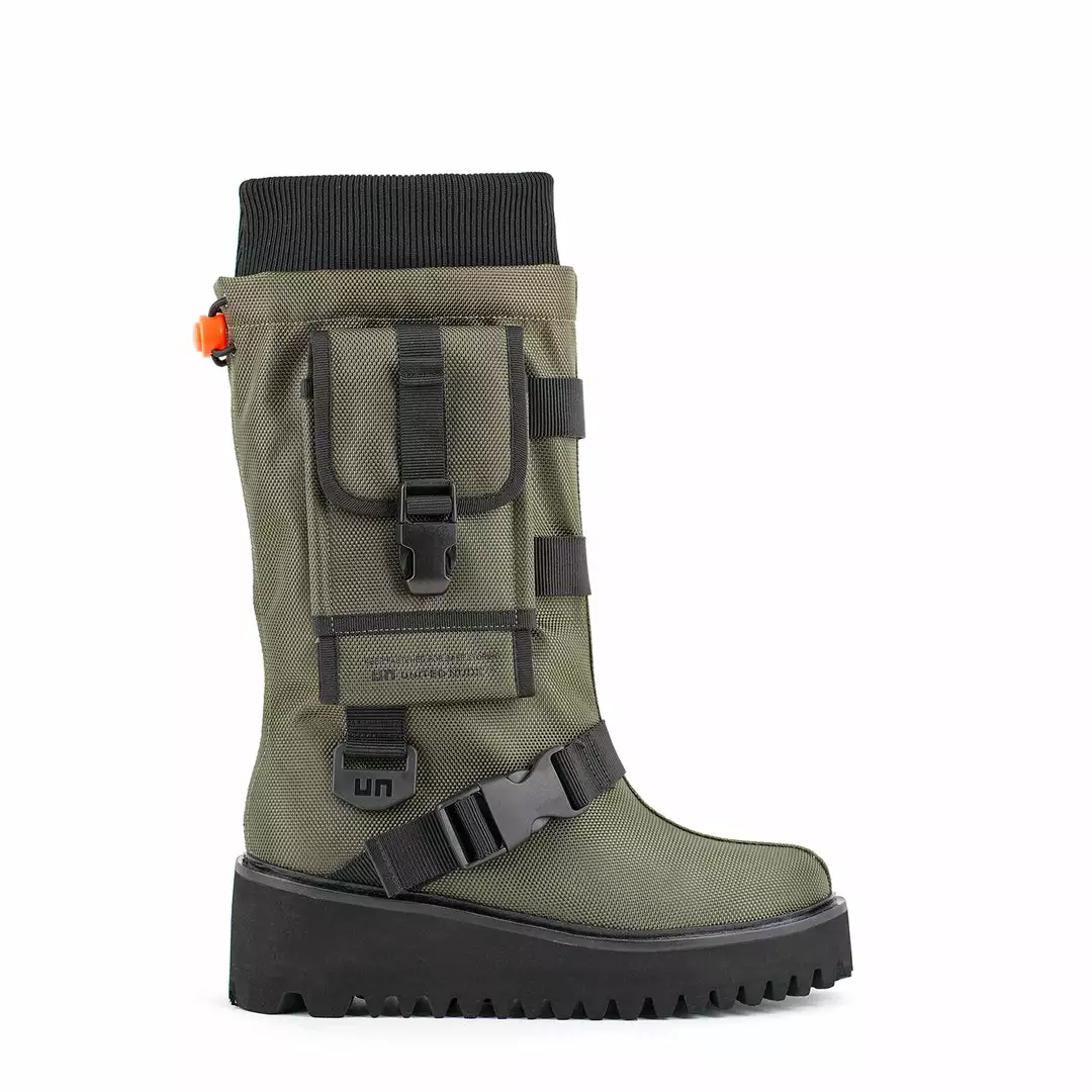 The Combat Pocket is a mid-calf boot featuring fully functional pockets, utility straps, and detachable nylon accessories – adding an element of every day convenience to a daring, yet sophisticated silhouette. A tribute to our signature United Nude pocket boots of the past.