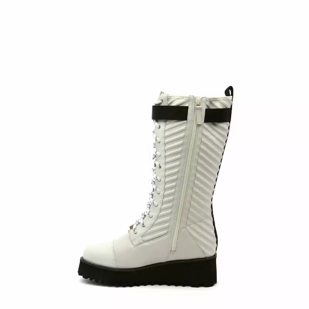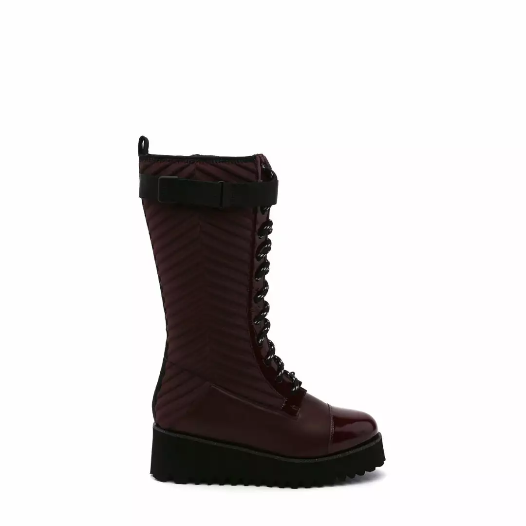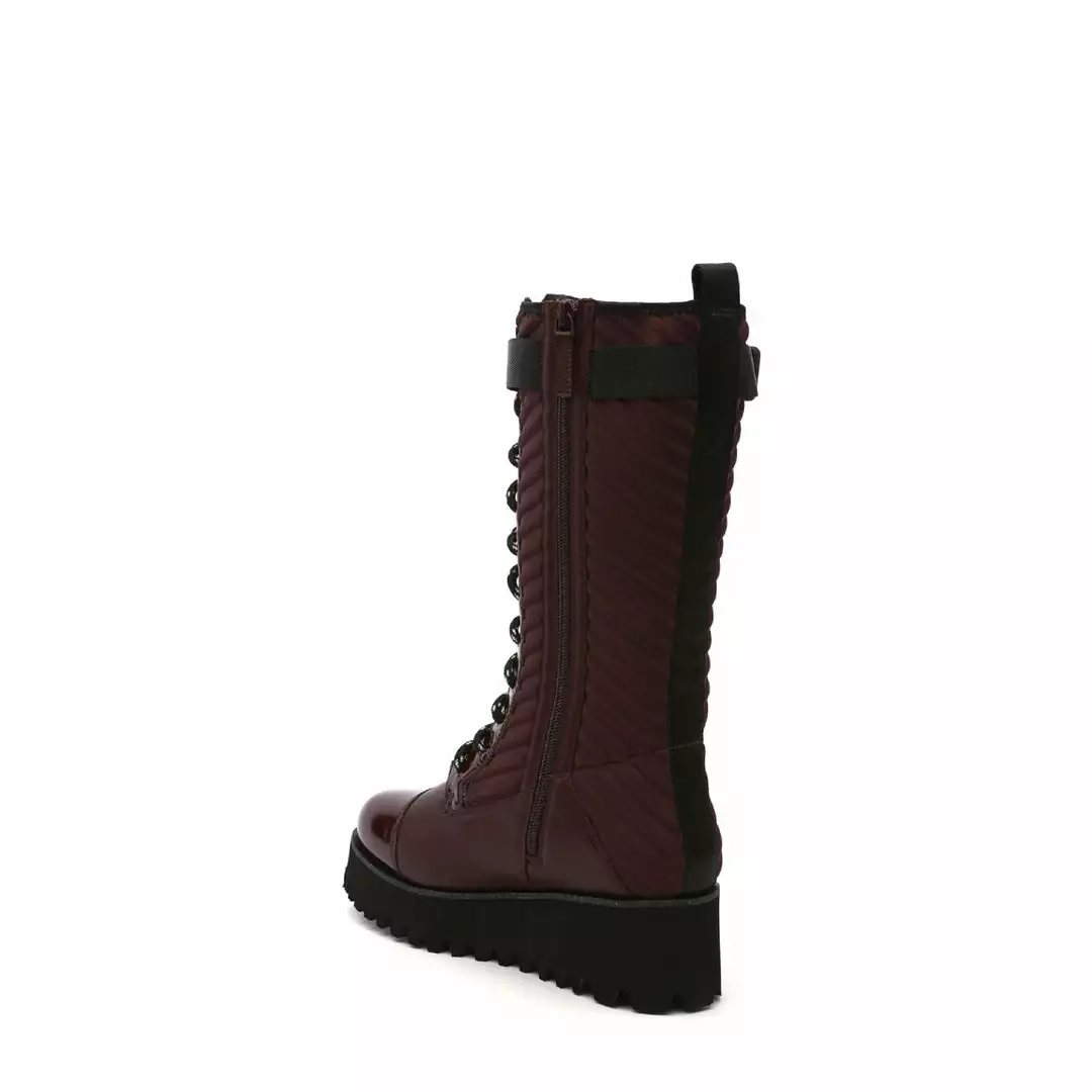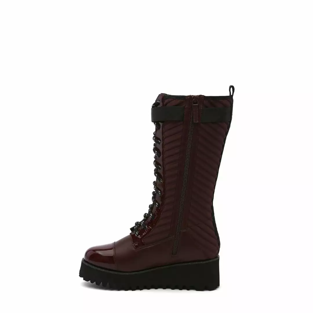 The Combat Tall Boot is a knee high combat boot with a quilted neoprene shaft and mixed textile upper that sits on a cleated platform sole. Ultra plush lining crafted from eco-fur ensures a cozy and comfy fit for the coldest of days.