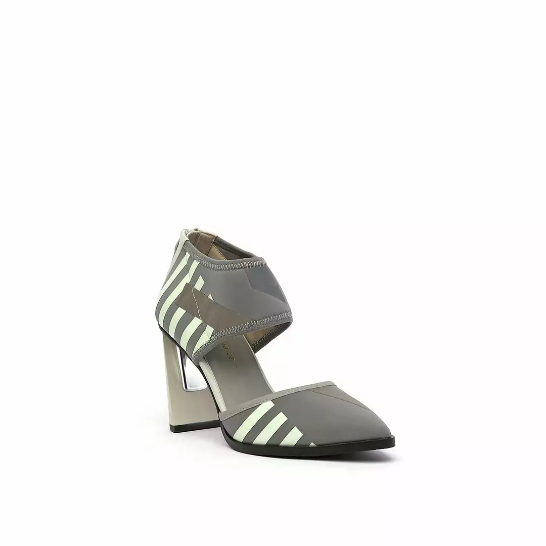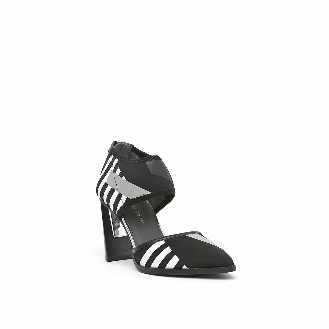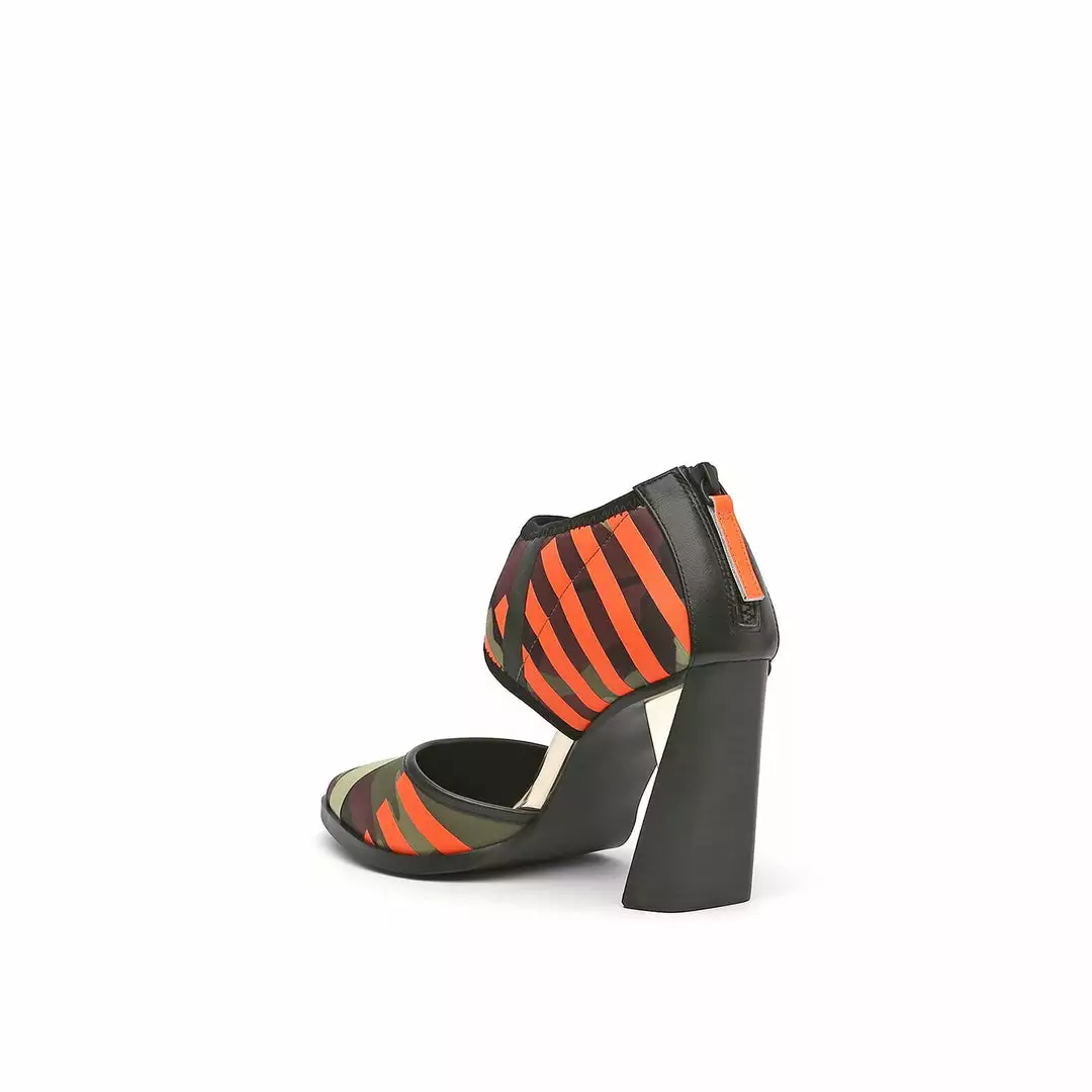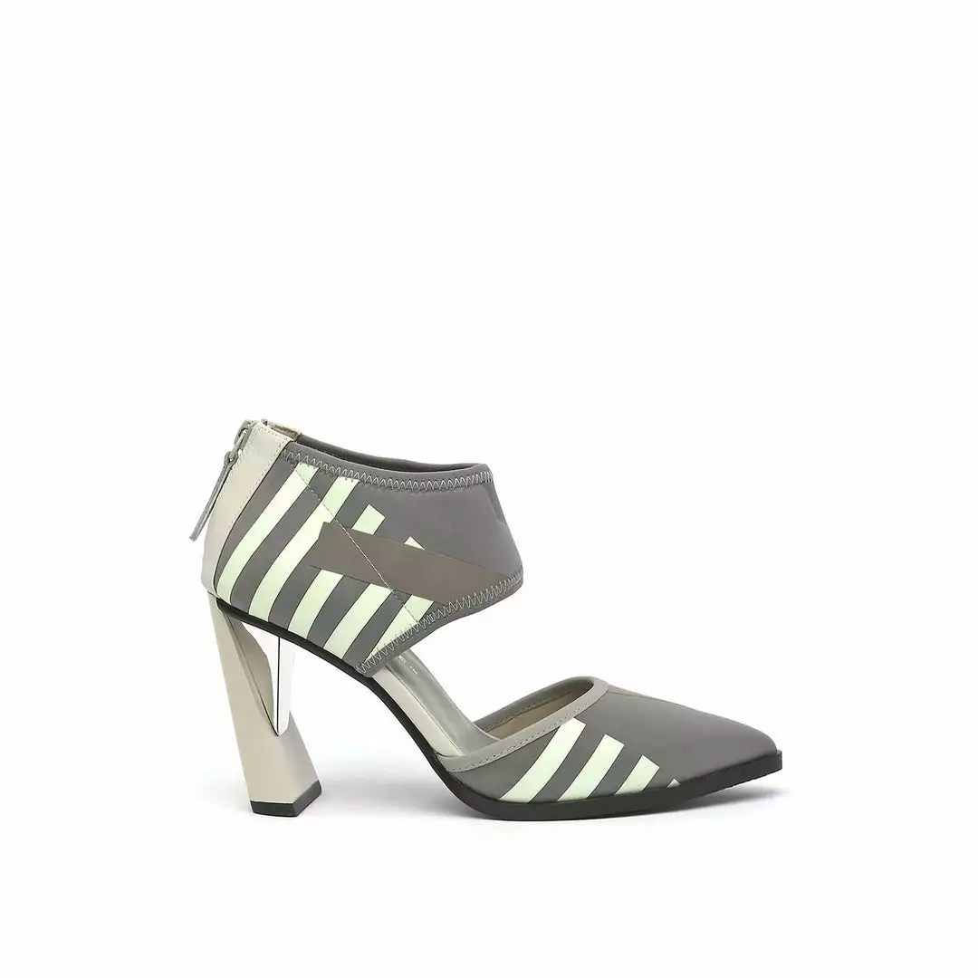 The d’orsay Calli is a pointy toe high heel fabricated with a comfortable neoprene upper and is perched atop a tapering stacked leather block heel.