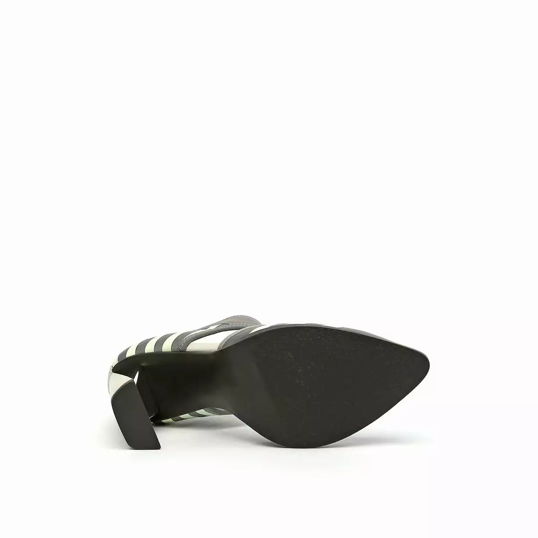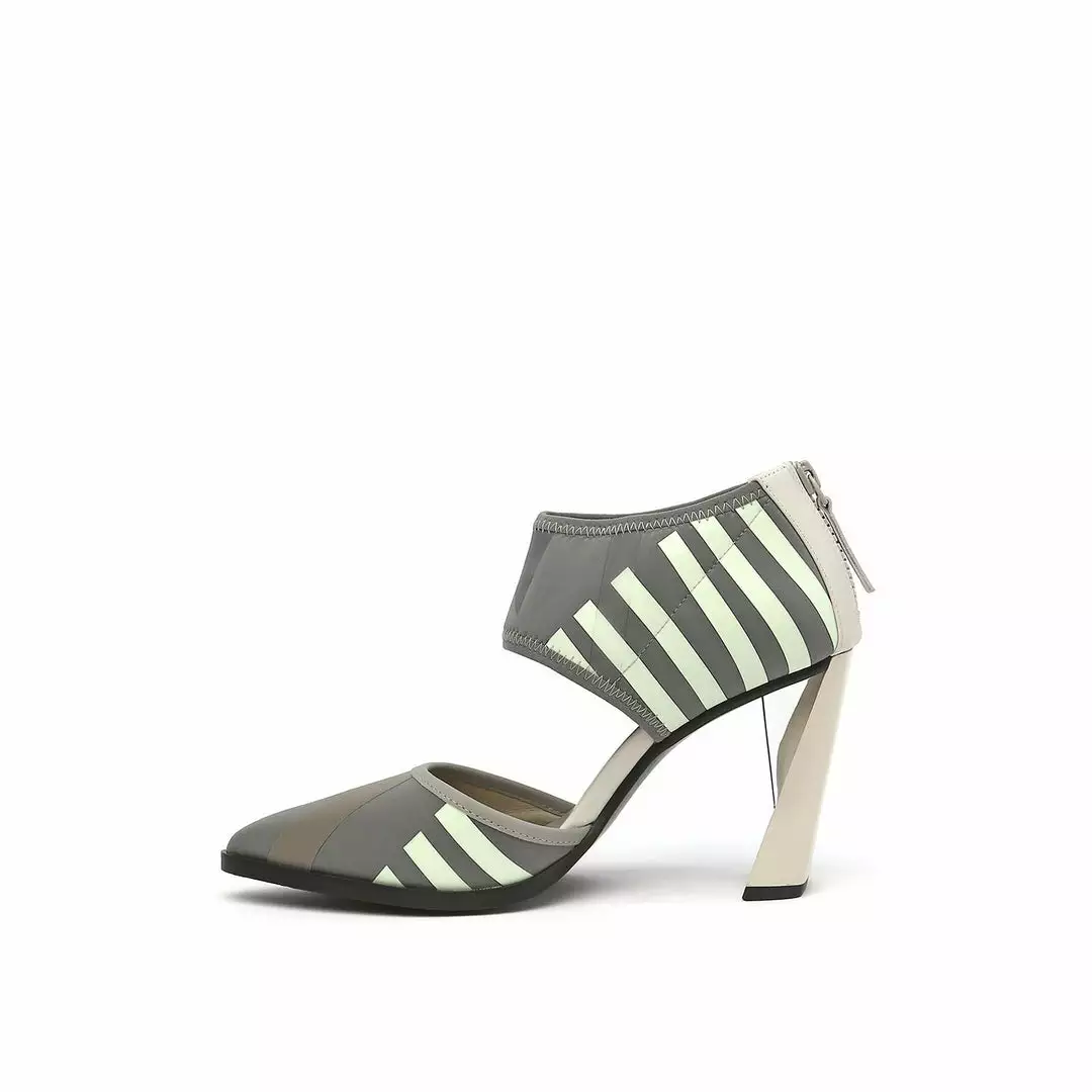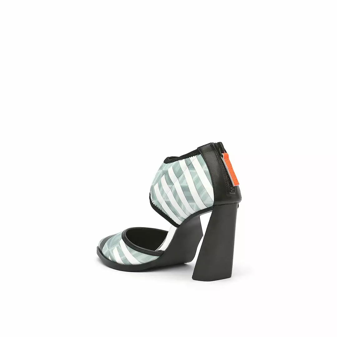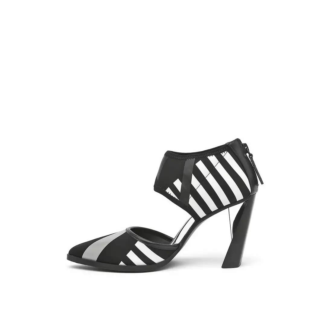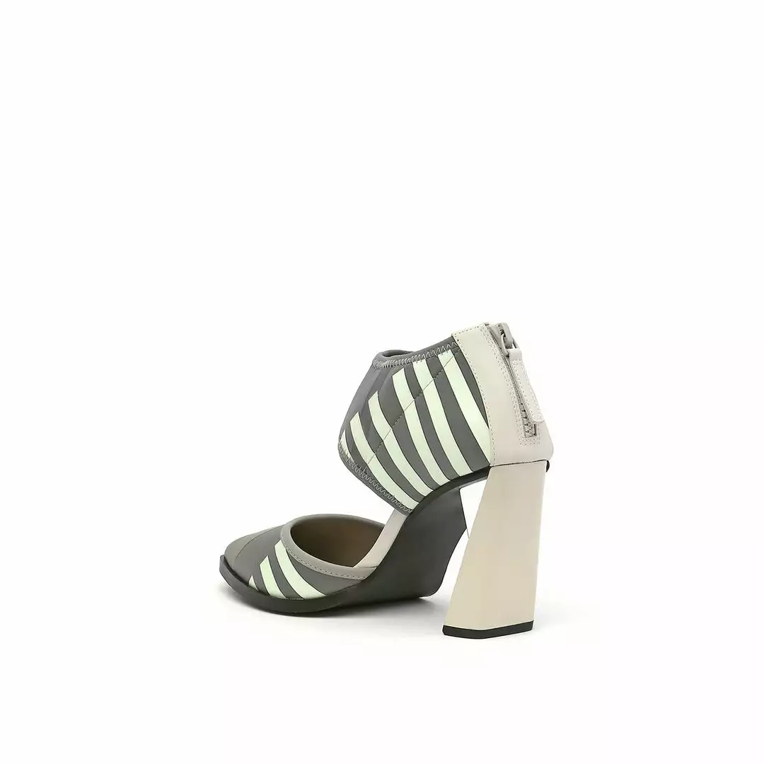 The d’orsay Calli is a pointy toe high heel fabricated with a comfortable neoprene upper and is perched atop a tapering stacked leather block heel.