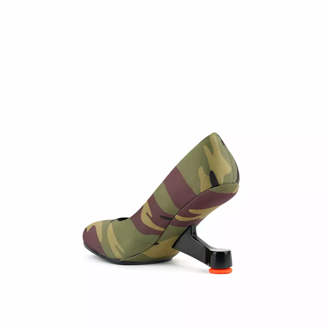 The Eamz Pump is a classic round toe pump that is balanced on a striking chromed heel. Crafted to perfection, the shank is sturdily connected to the aluminum-casted heel for maximum support and a comfortable fit. The heel is inspired by the classic Eames lounge chair, an icon of Modern design.