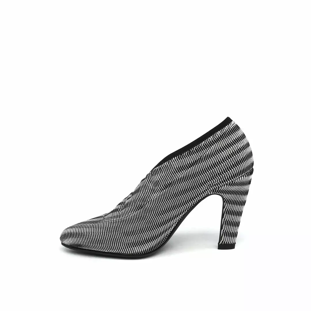 The Fold Lite Hi is a high heel ankle bootie with a soft almond toe and an asymmetrical top line.