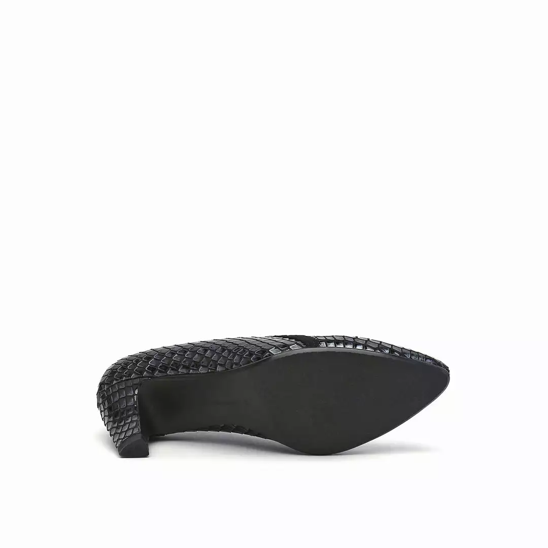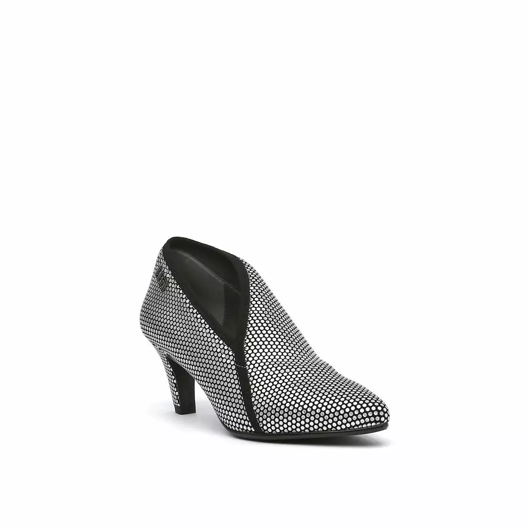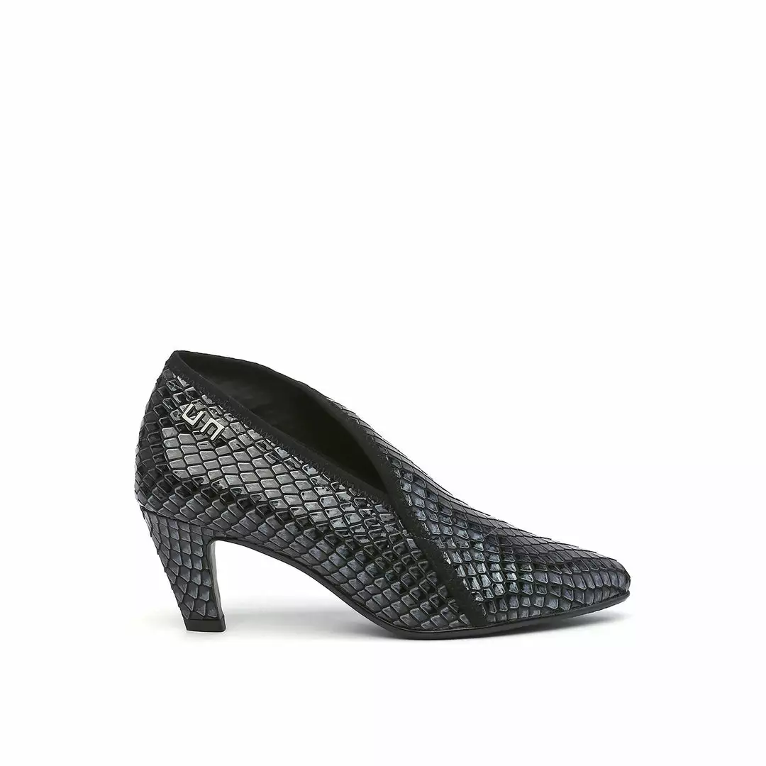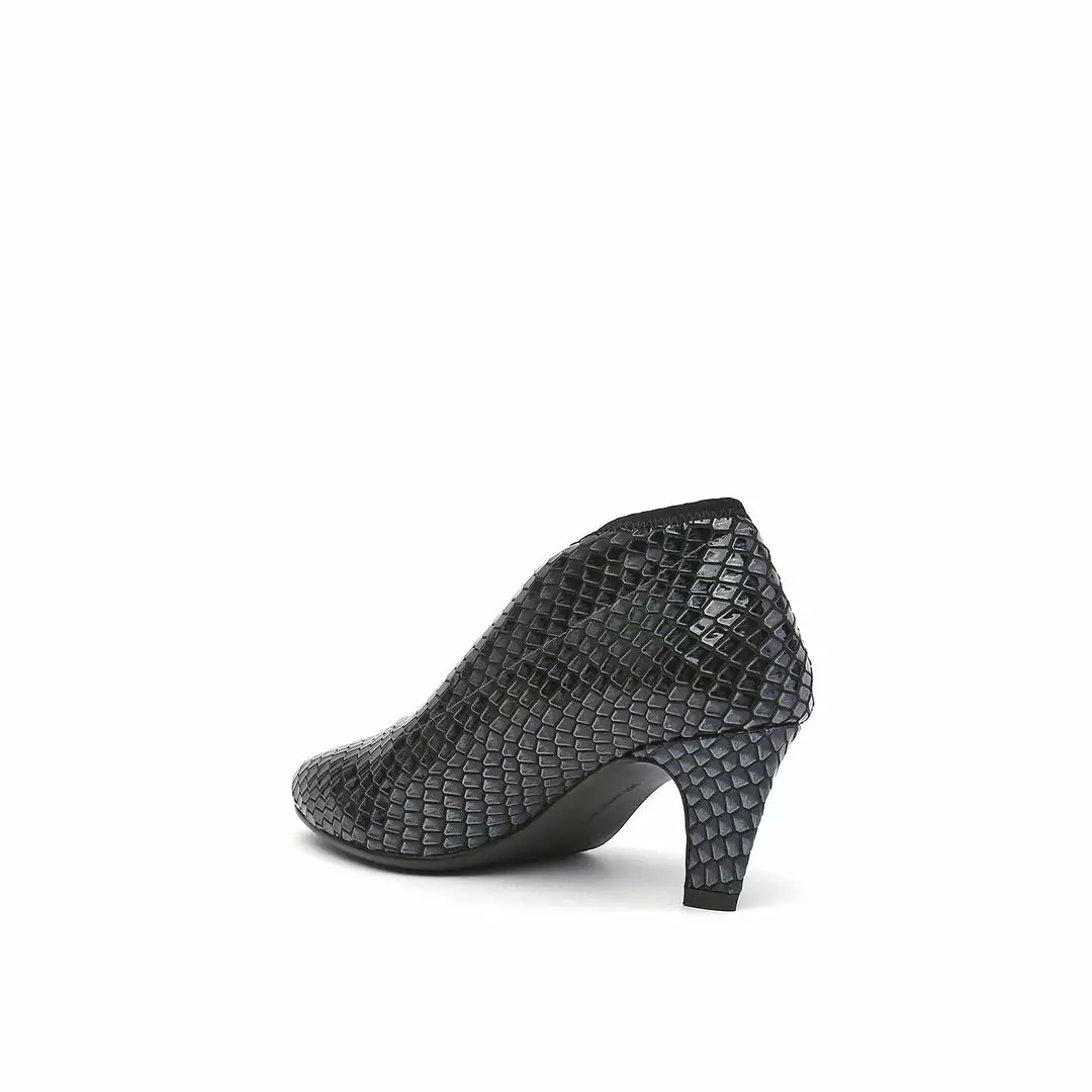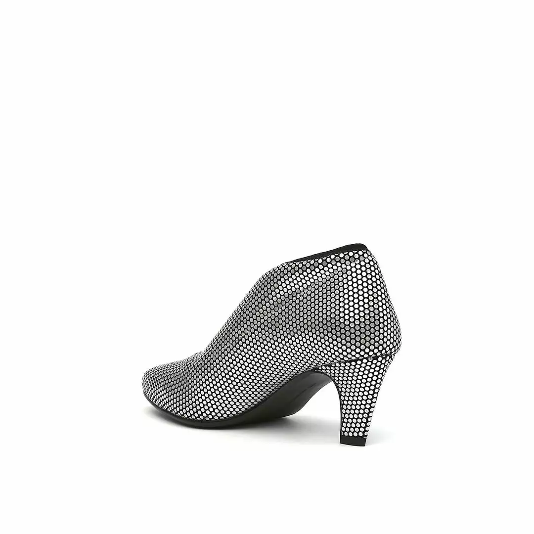 The Fold Lite Mid is a mid-heel ankle bootie with a soft almond toe and asymmetrical top line.