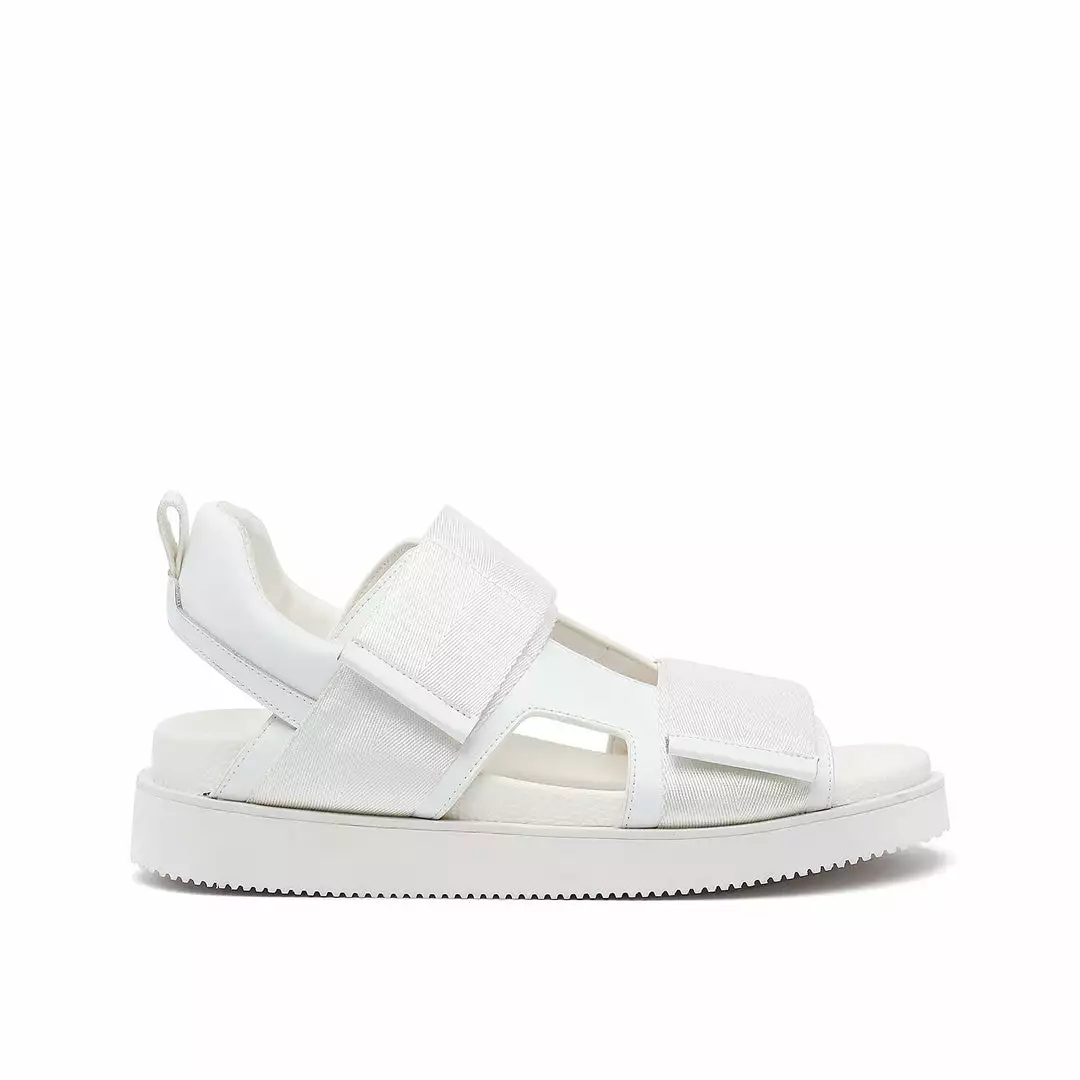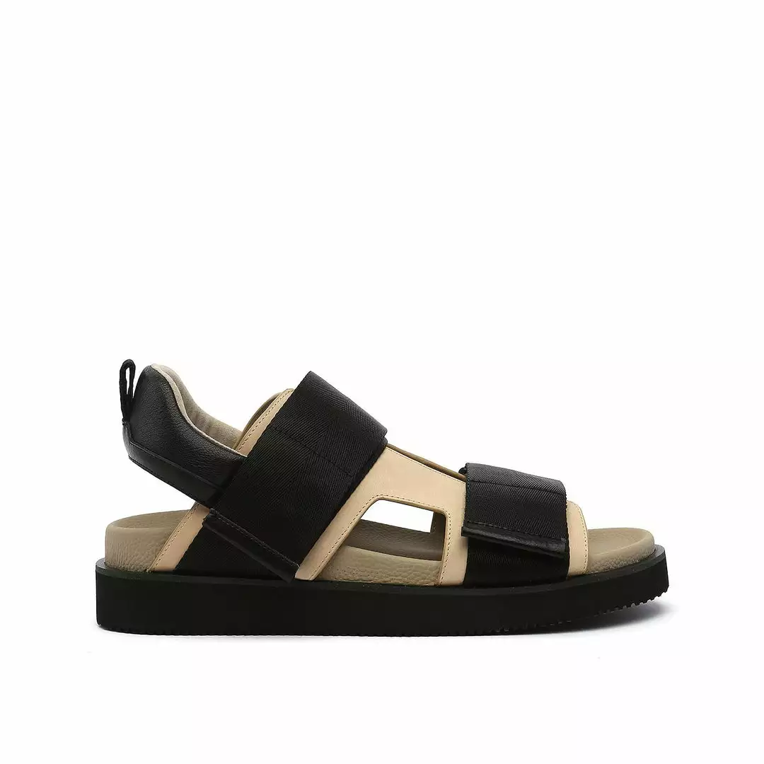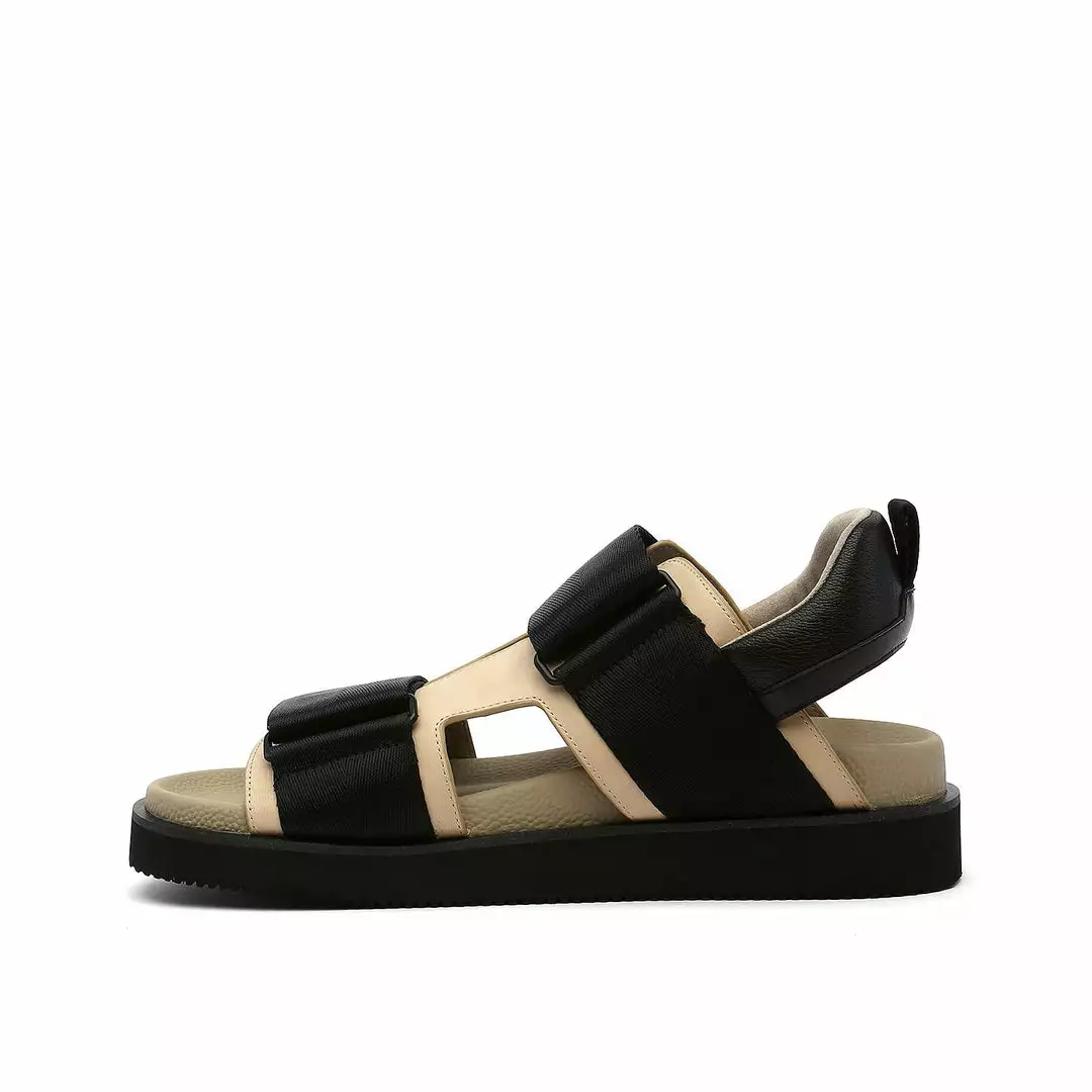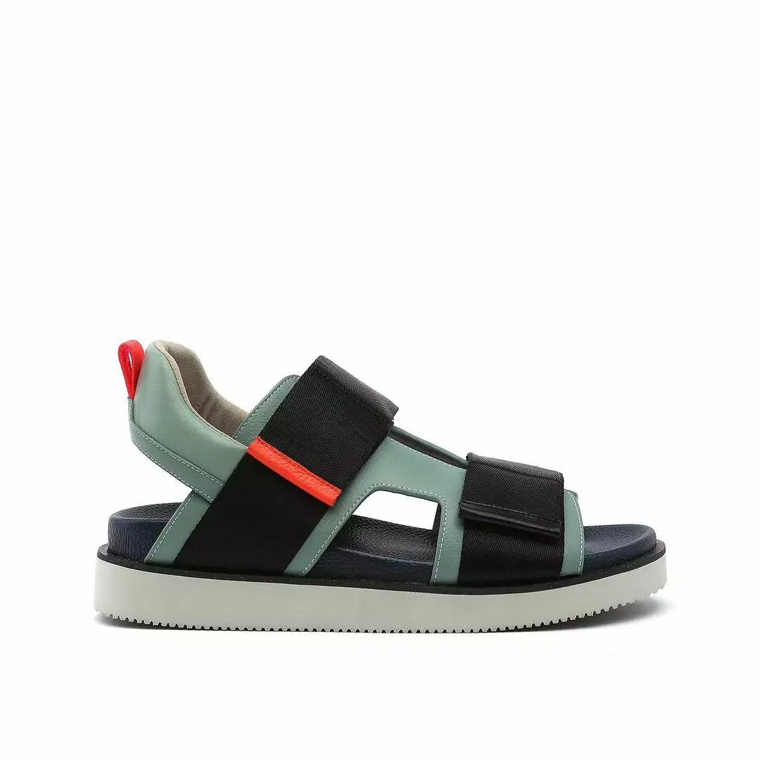 The Geo Sandal Mens is a leather sandal designed by paring down a simple sport runner silhouette. The bold double straps outfitted with velcro, soft padded counter strap and contoured footbed take the form of a stylish sandal with the comfort of a sneaker.
