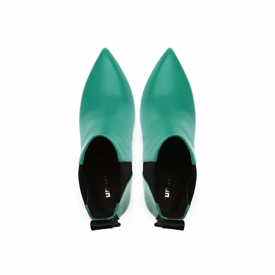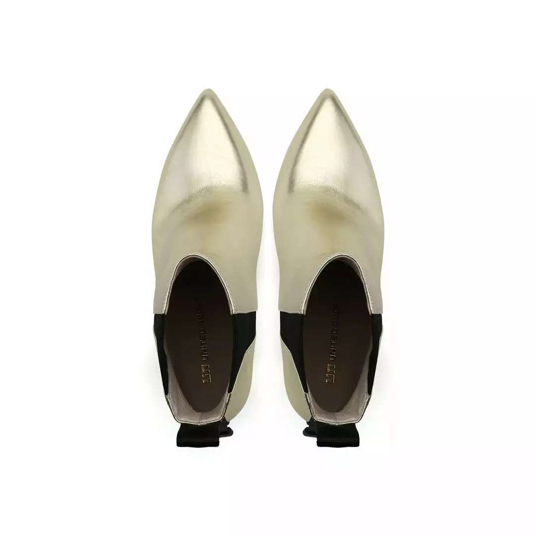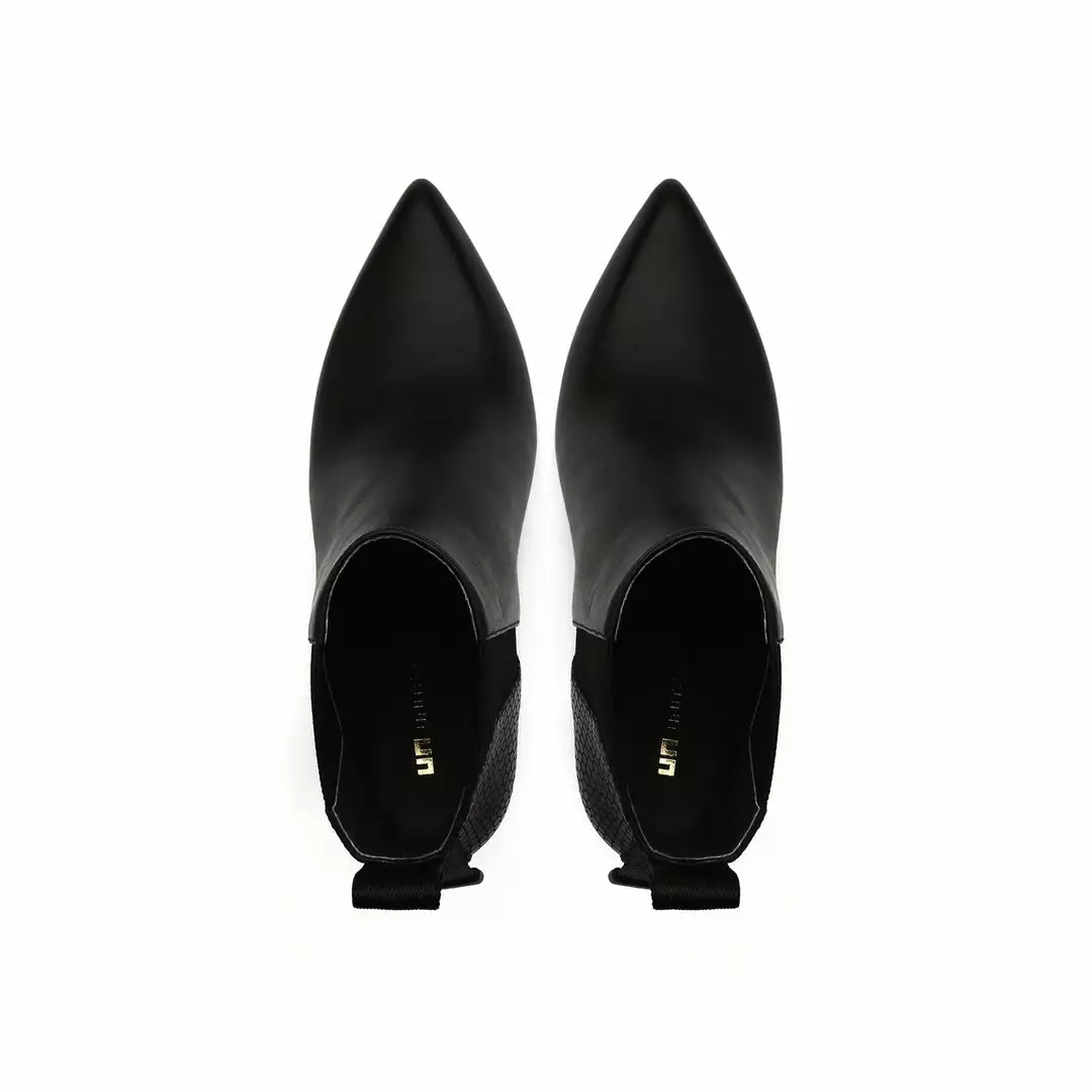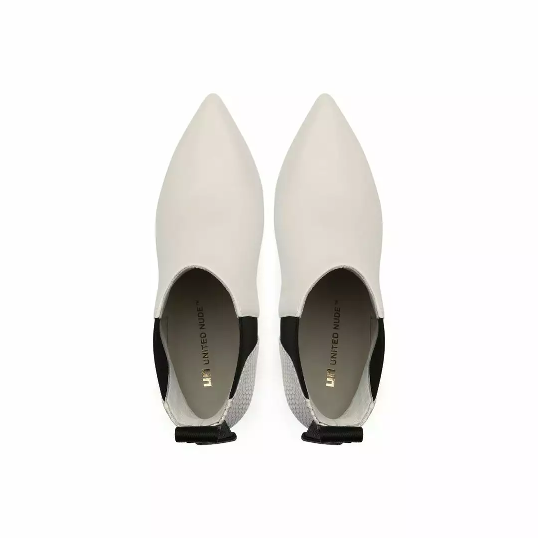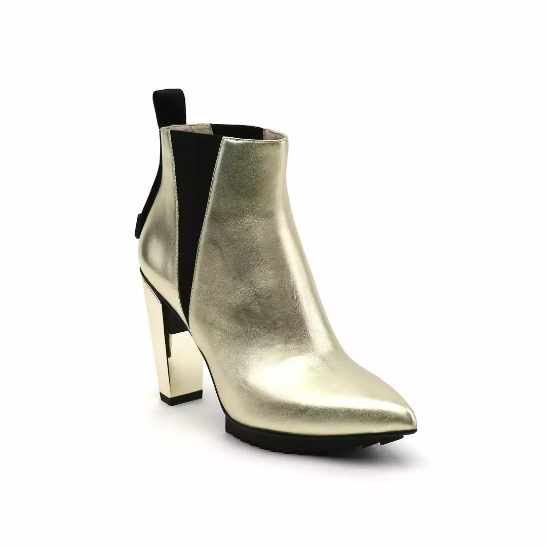 The LEV Tek Bootie Hi is a pointy-toe high heel that is lifted by an angular high heel and cleated rubber platform. Rear pull straps and a triangular elastic panel fortify the style while adding functionality.