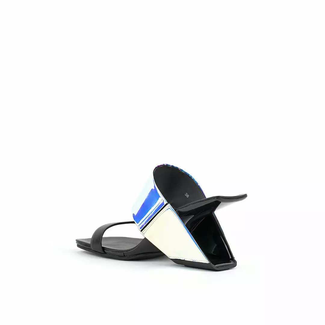 The Loop Hi is a high heel square toe sandal inspired by a loop that encompasses the foot by its upper and heel, giving the effect of floating heel. The expertly designed footbed and elastic on the inner area of the leather strap provides a comfortable and secure fit.
