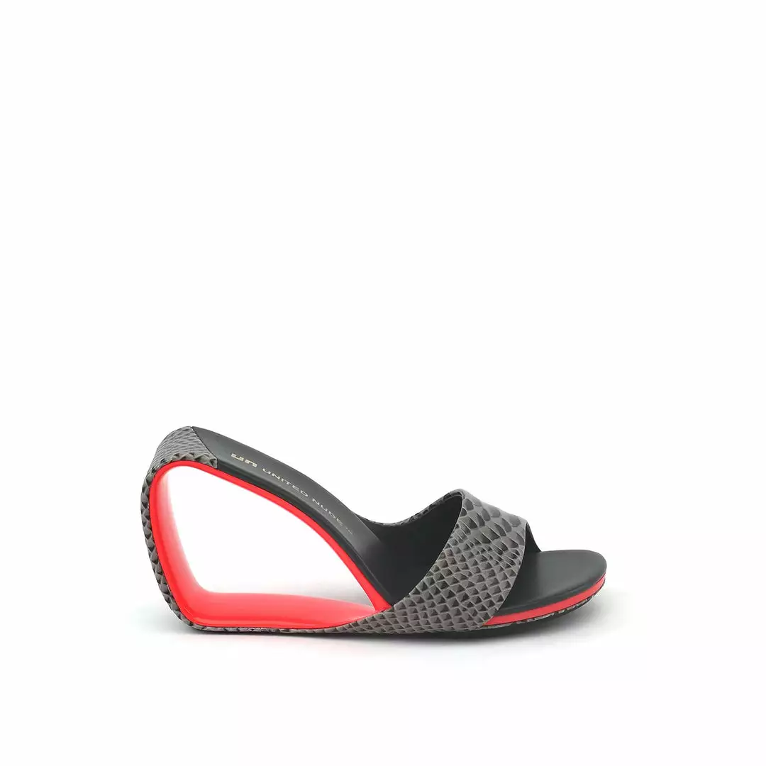 The Mobius Hi is a lightweight, open-wedge high heel made from fiber-reinforced nylon. A single band forms the sole, heel, footbed and upper of the shoe.