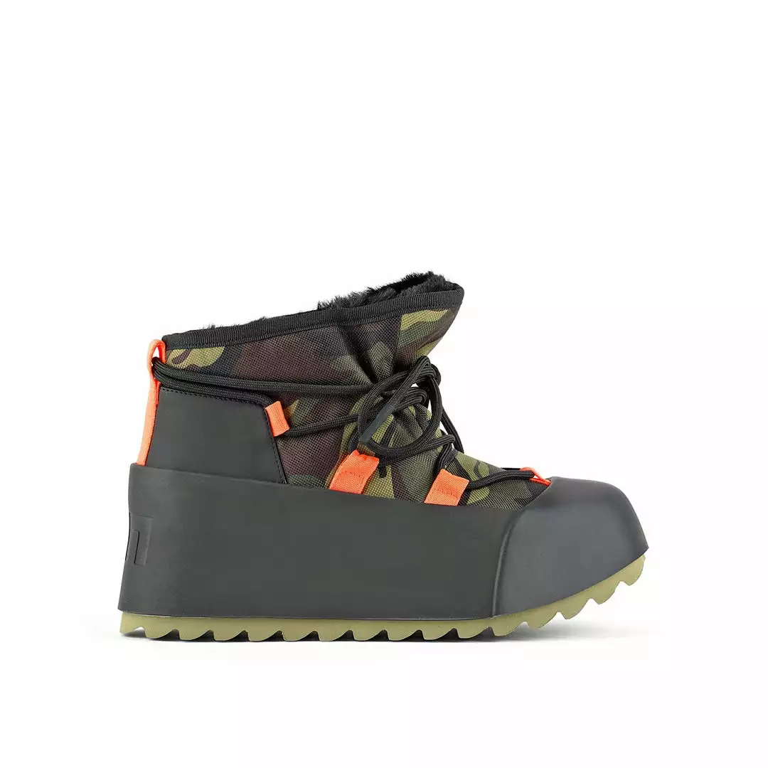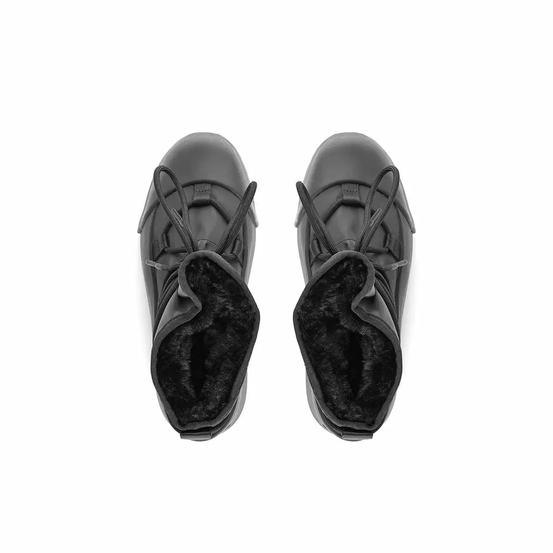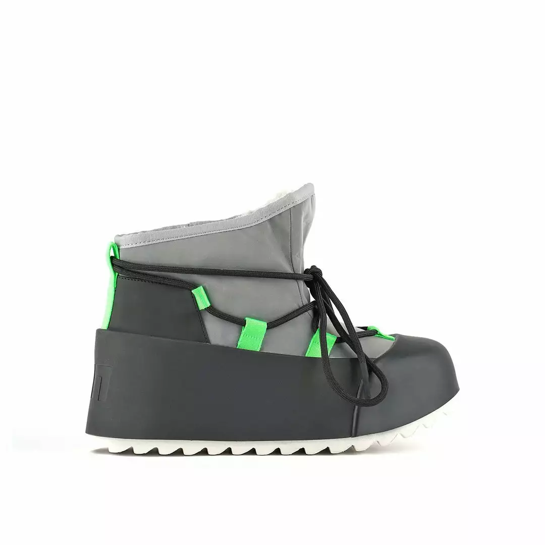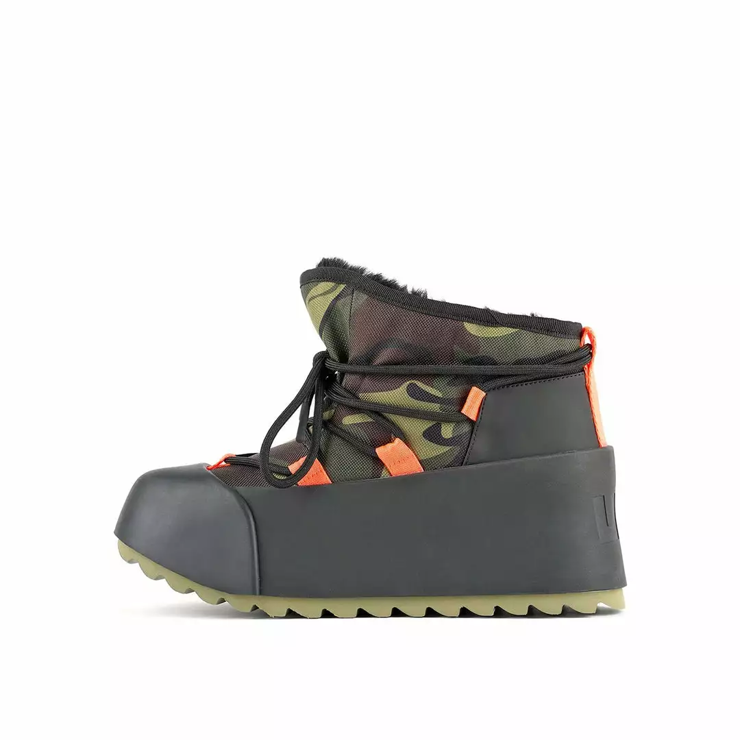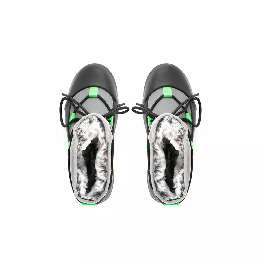 The Polar Bootie is cold weather bootie. A dominating waterproof outsole grounds the adjustable upper with a plush eco fur lining.