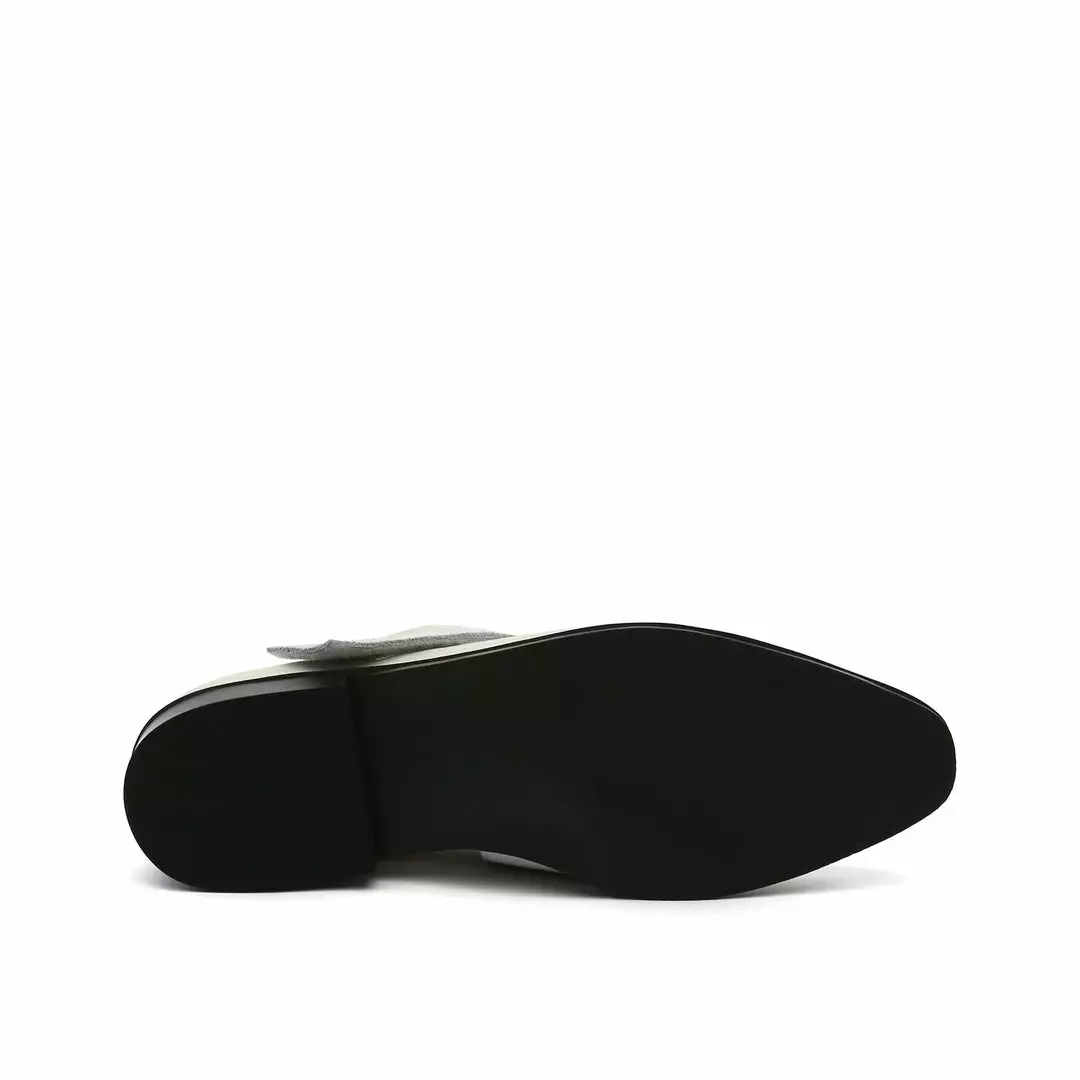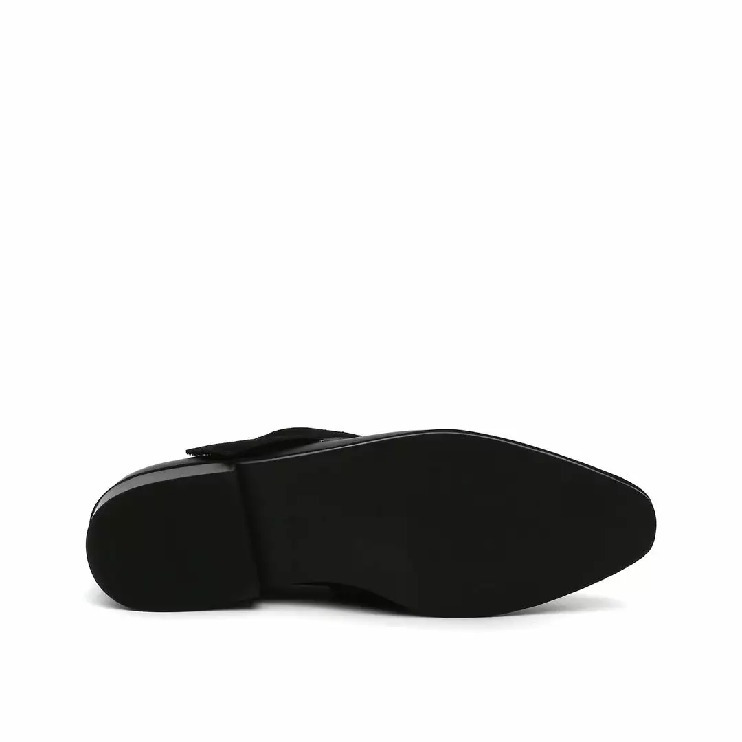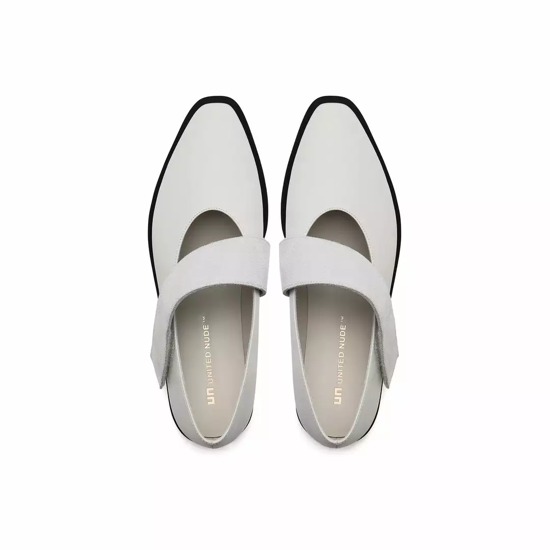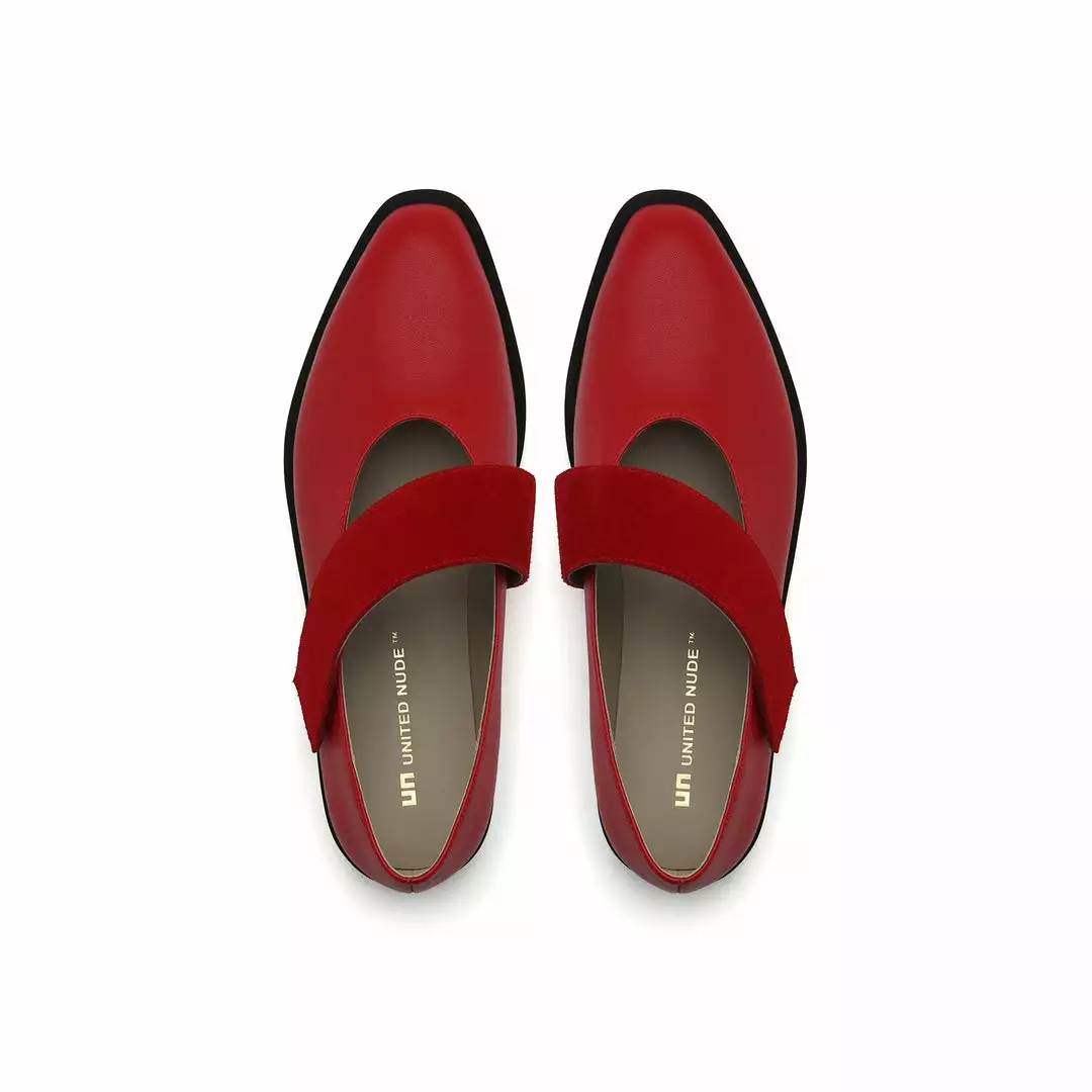 The Pure Mary is a modern leather crafted Mary jane with a broad contrasting suede strap that fastens diagonally over the foot for a secure fit.