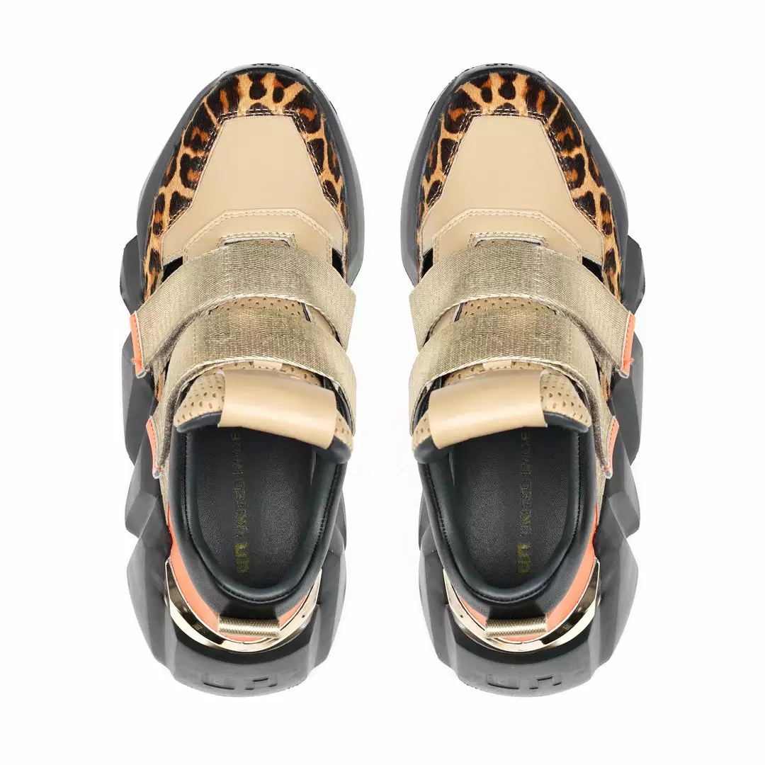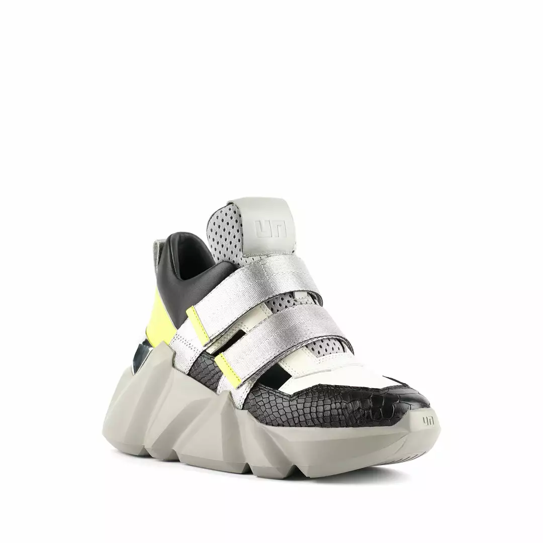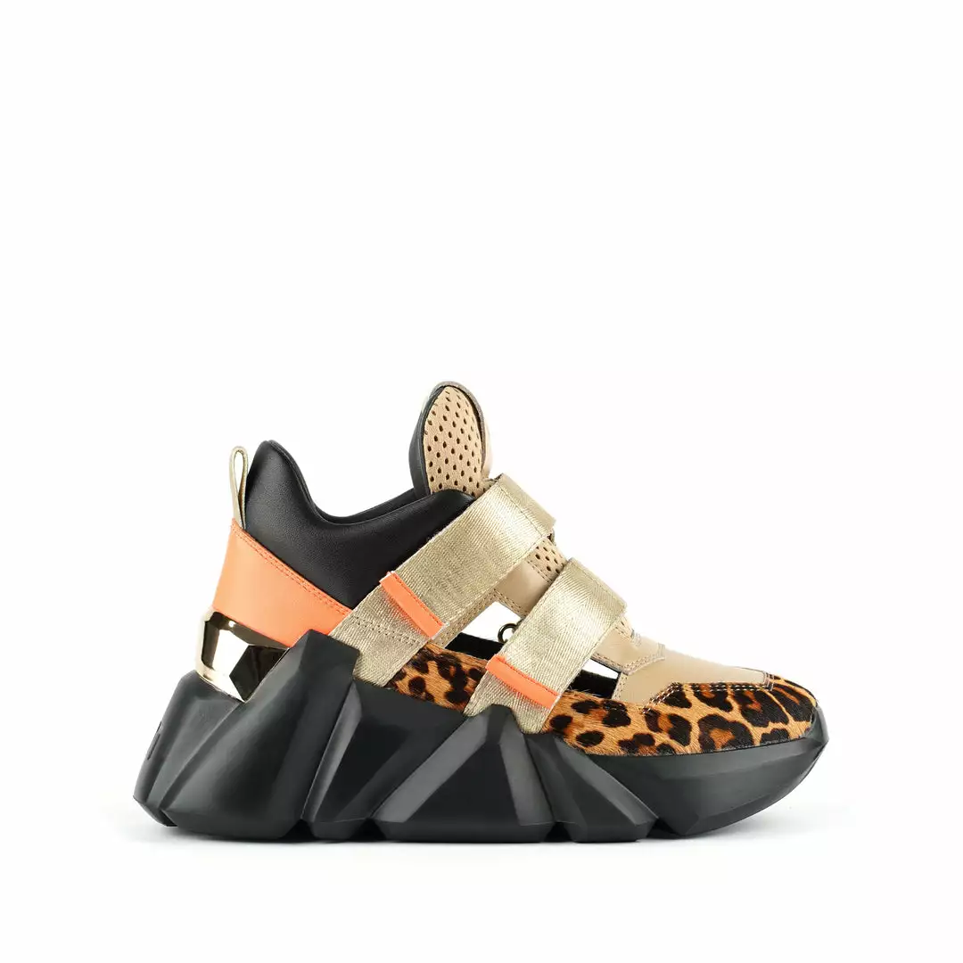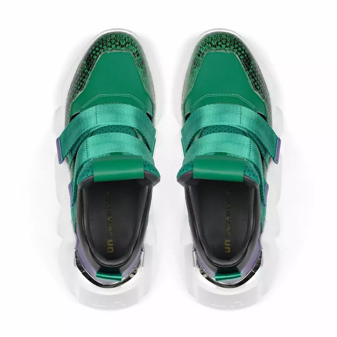 The Space Kick Summer is a cutout sneaker with a statement wedge sole. The chunky EPR outsole soars into the double velcro enclosure upper with breathable cutout details.