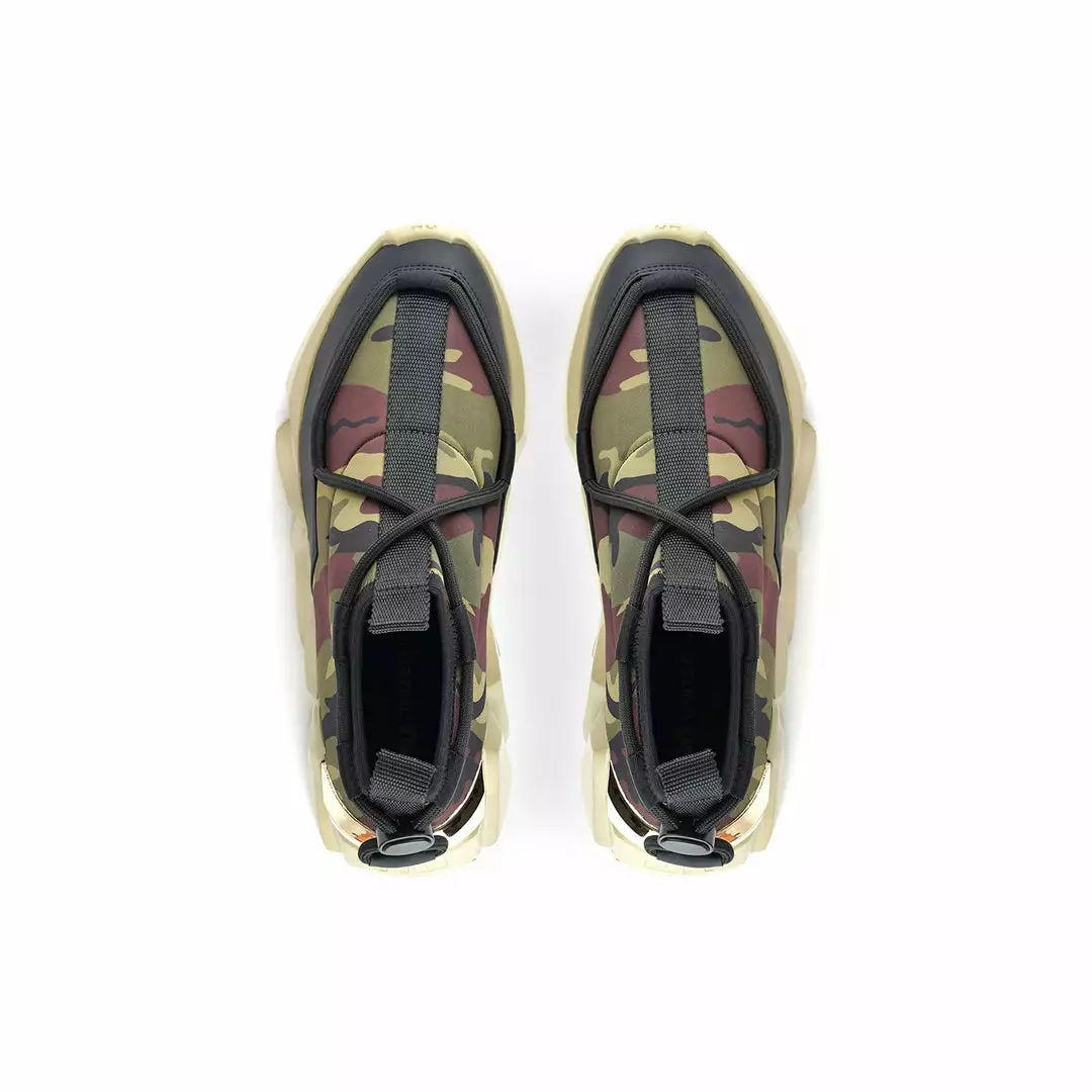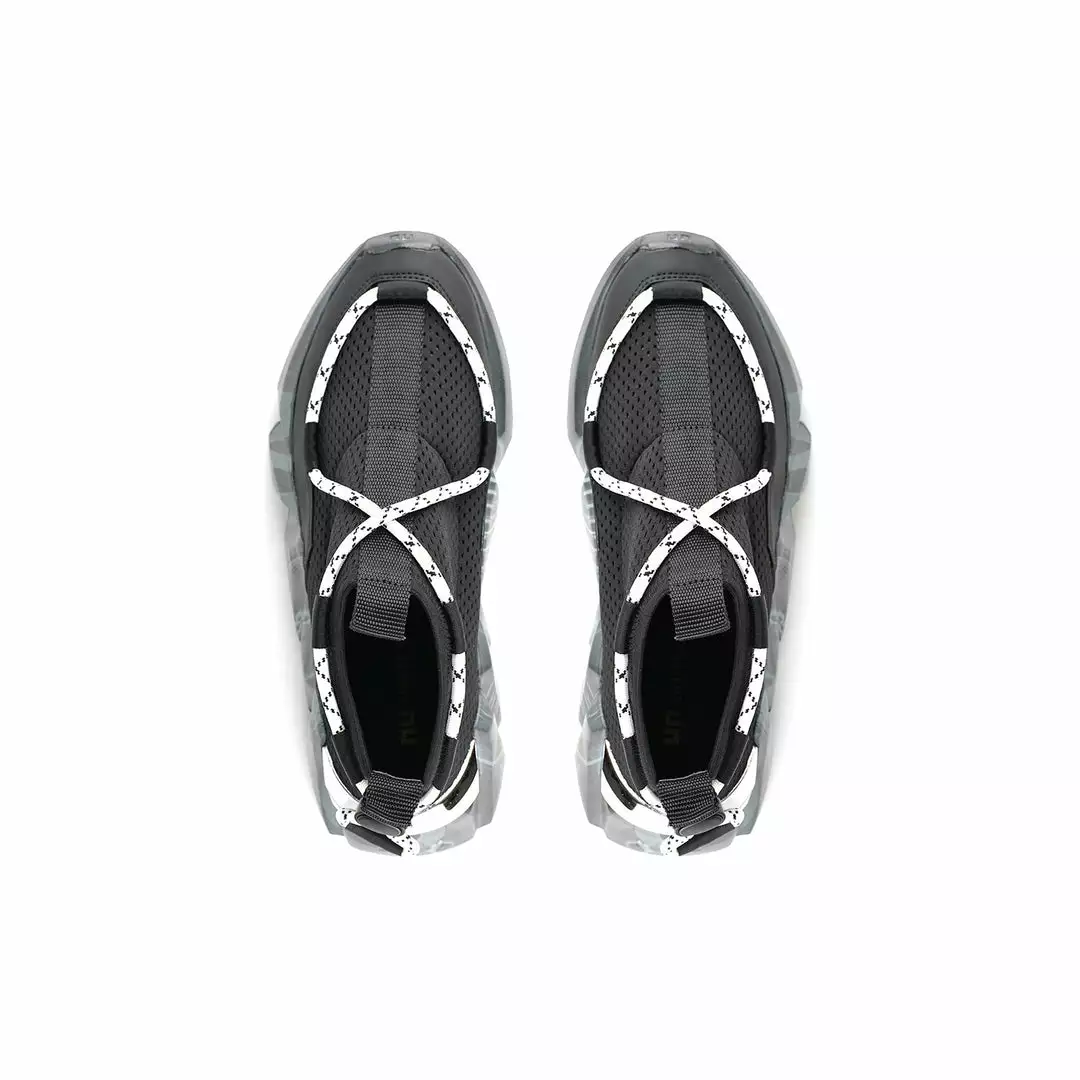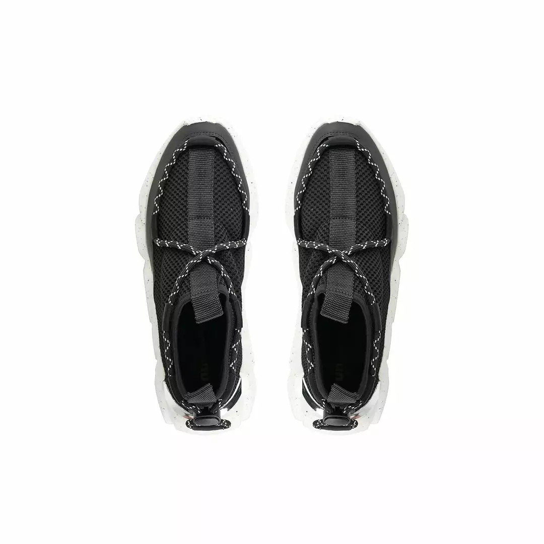 The Space Kick X is a slip on sneaker with a simple sock upper. Rope detailing weaves from the rubberized to cap to the heel counter, where it can be adjusted for an individualized fit.