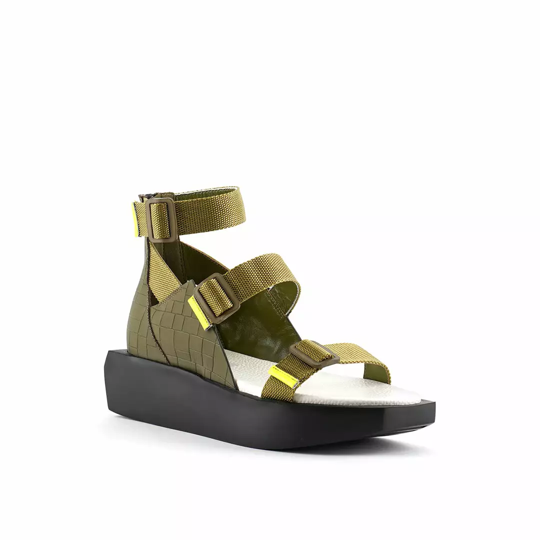 The Su Lo is a flatform sandal with a blocky angular base, adjustable nylon straps, a leather upper and a zipper at the heel. The EPR outsole and footbed adds a sporty bounce to your walk.