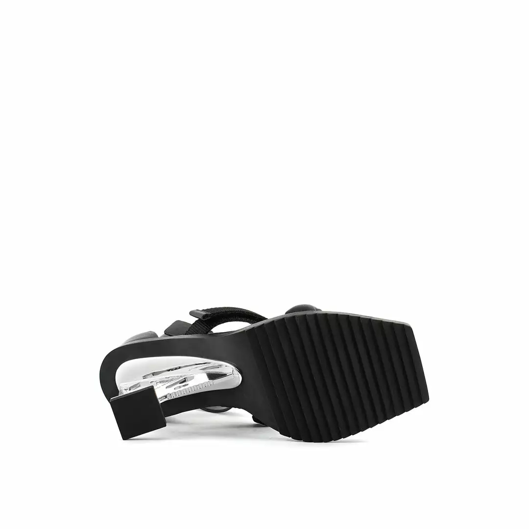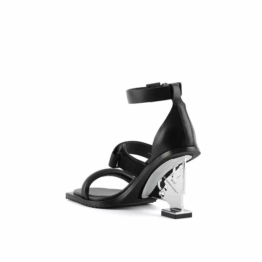 The Tool Sandal features three unique straps in padded, velcro and buckle closures. This style is inspired by multifunctional everyday accessories and features the classic UN Tool heel.