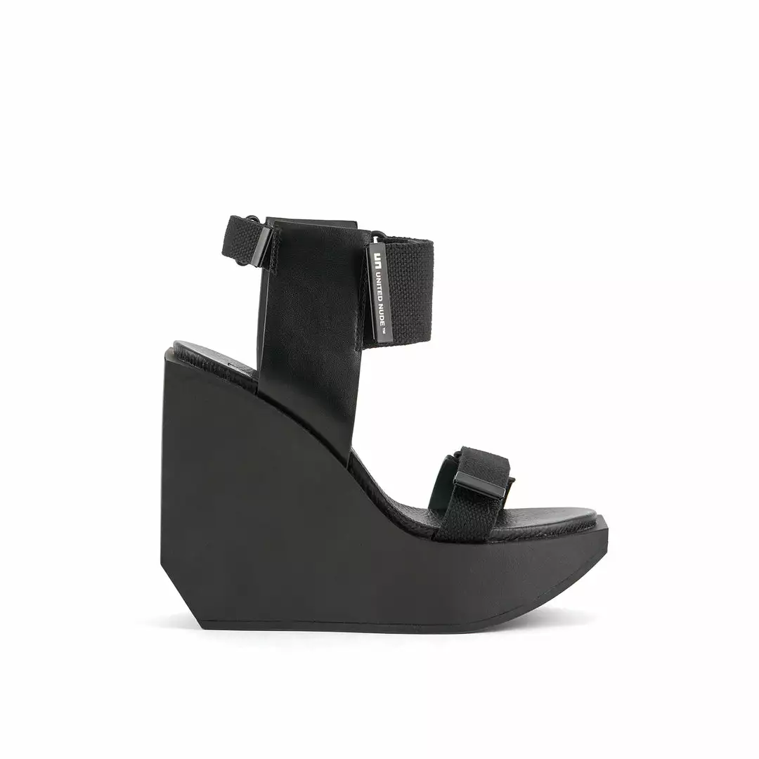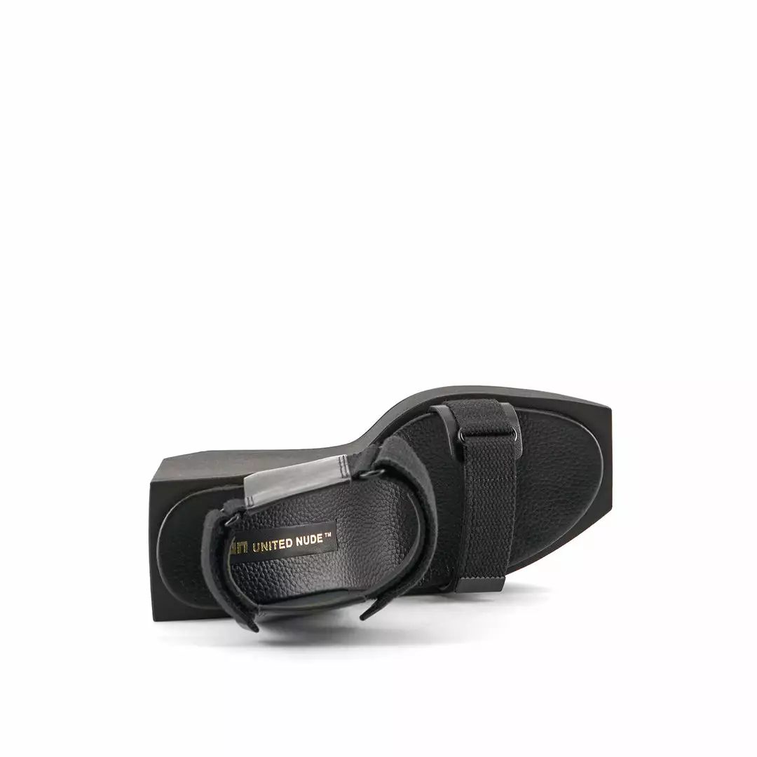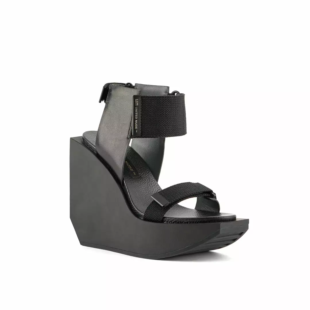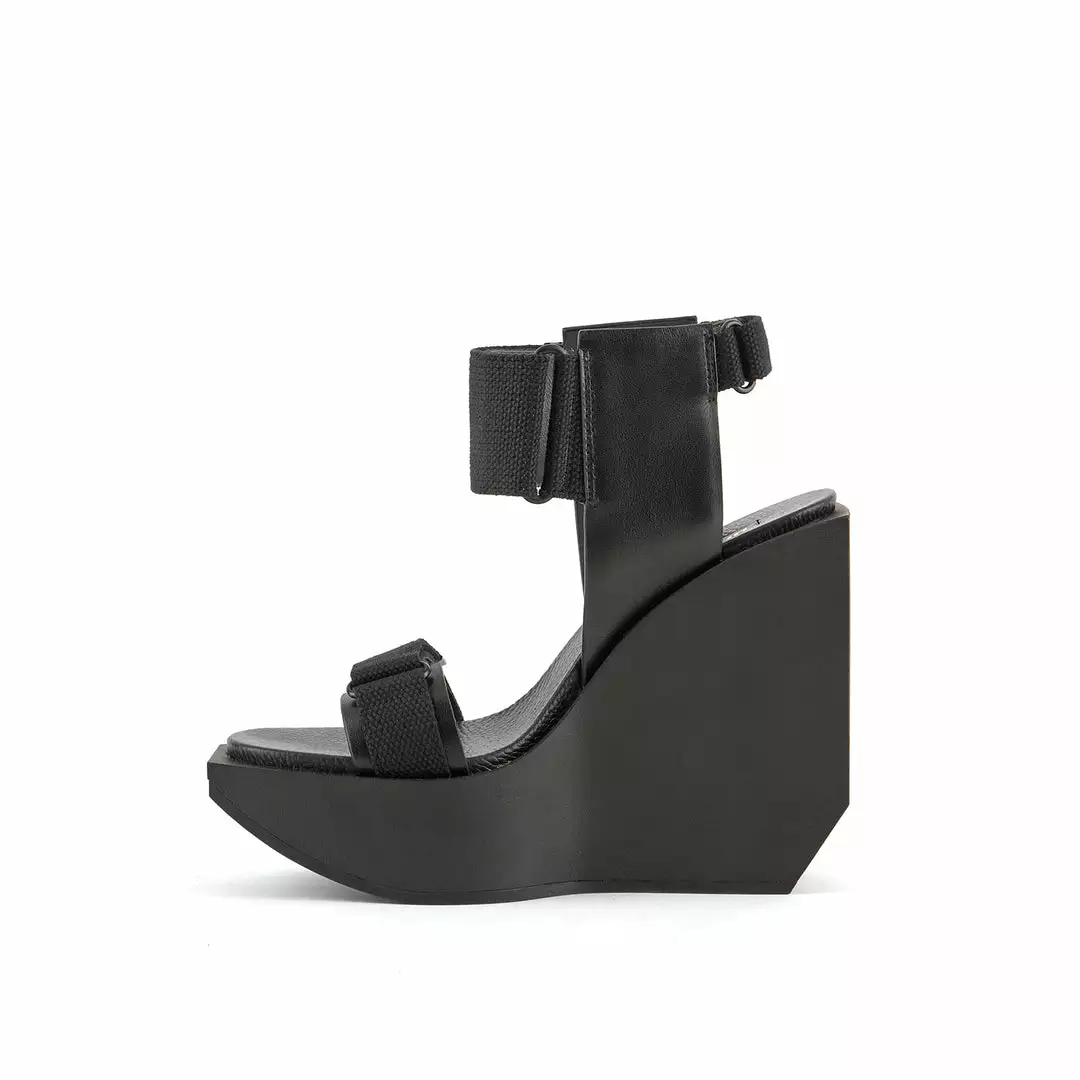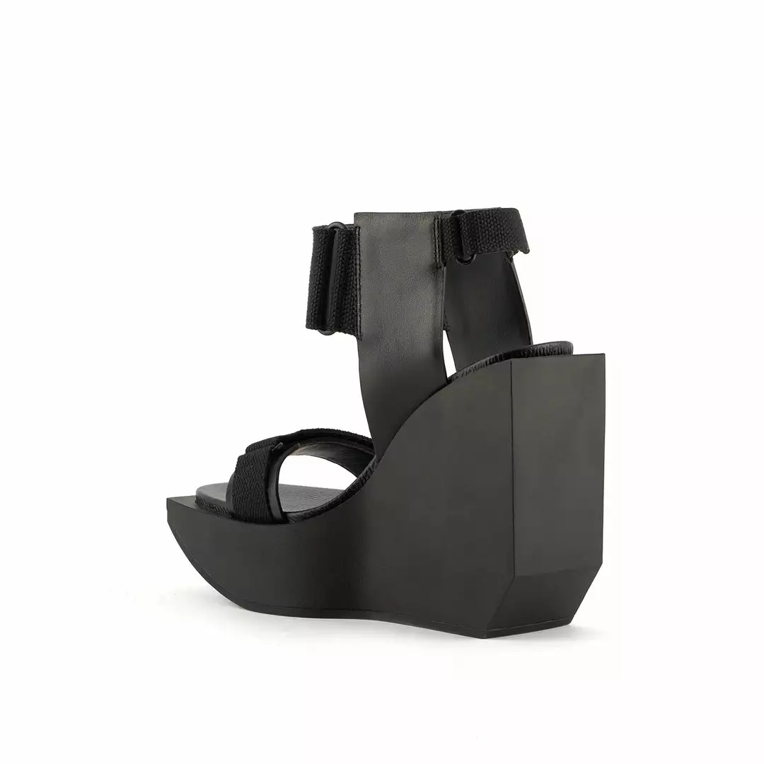 The Wa Hi is an ultra high heel wedge with three adjustable cotton straps, metal tips, velcro closures and a sculptural EPR outsole with a subtle, textured finish.