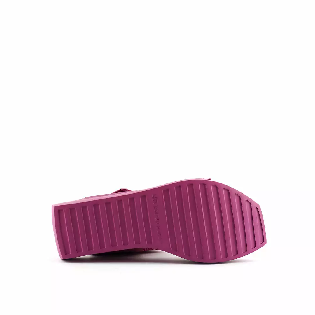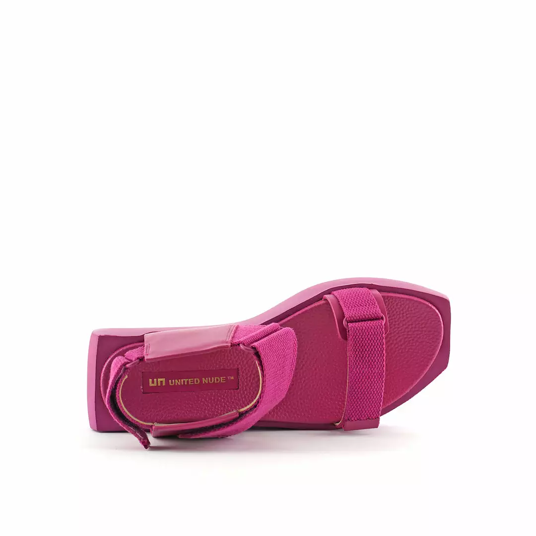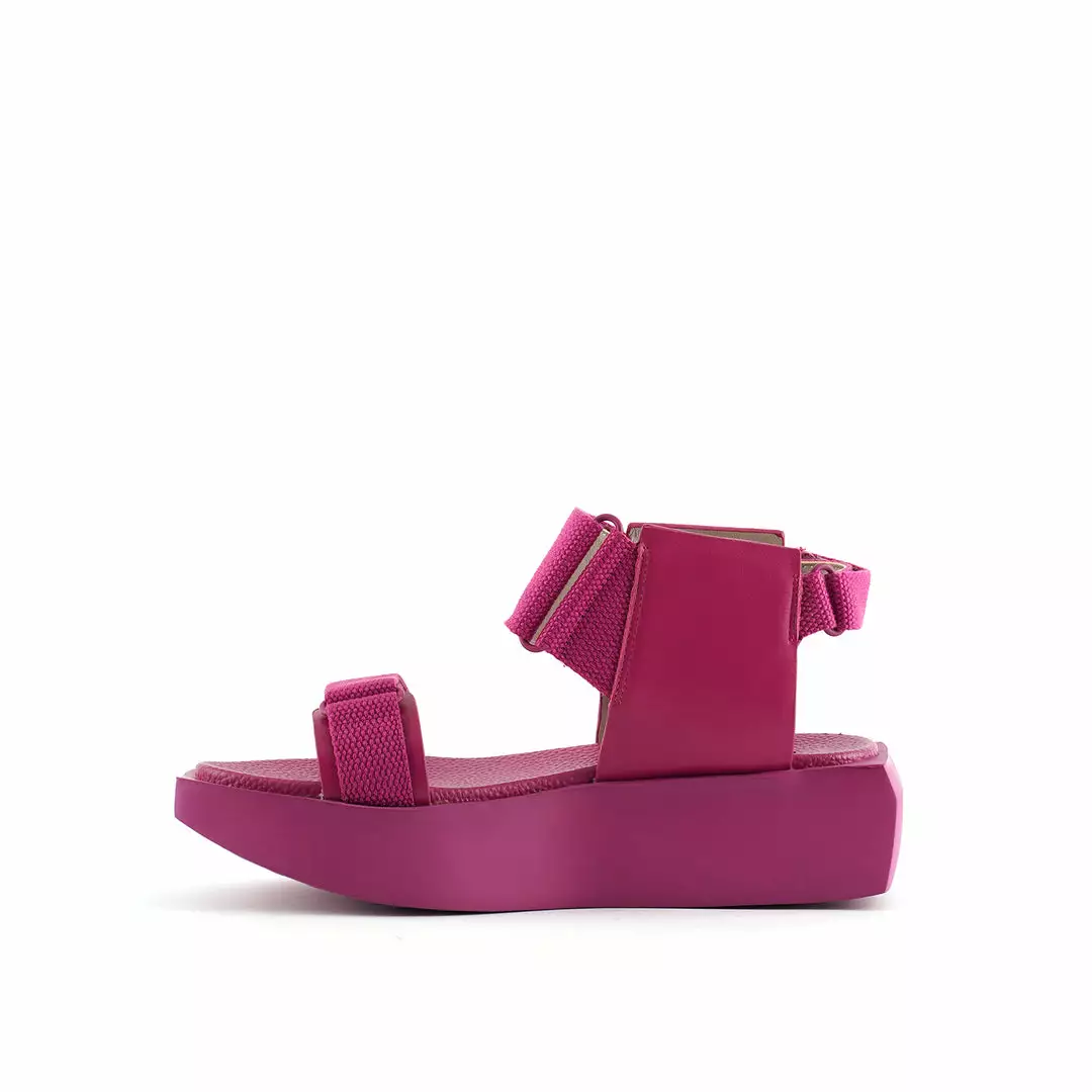 The Wa Lo is a flatform sandal featuring three adjustable cotton straps, metal tips, velcro closures, and a sculptural EPR outsole.