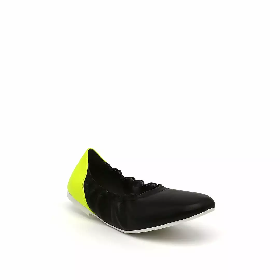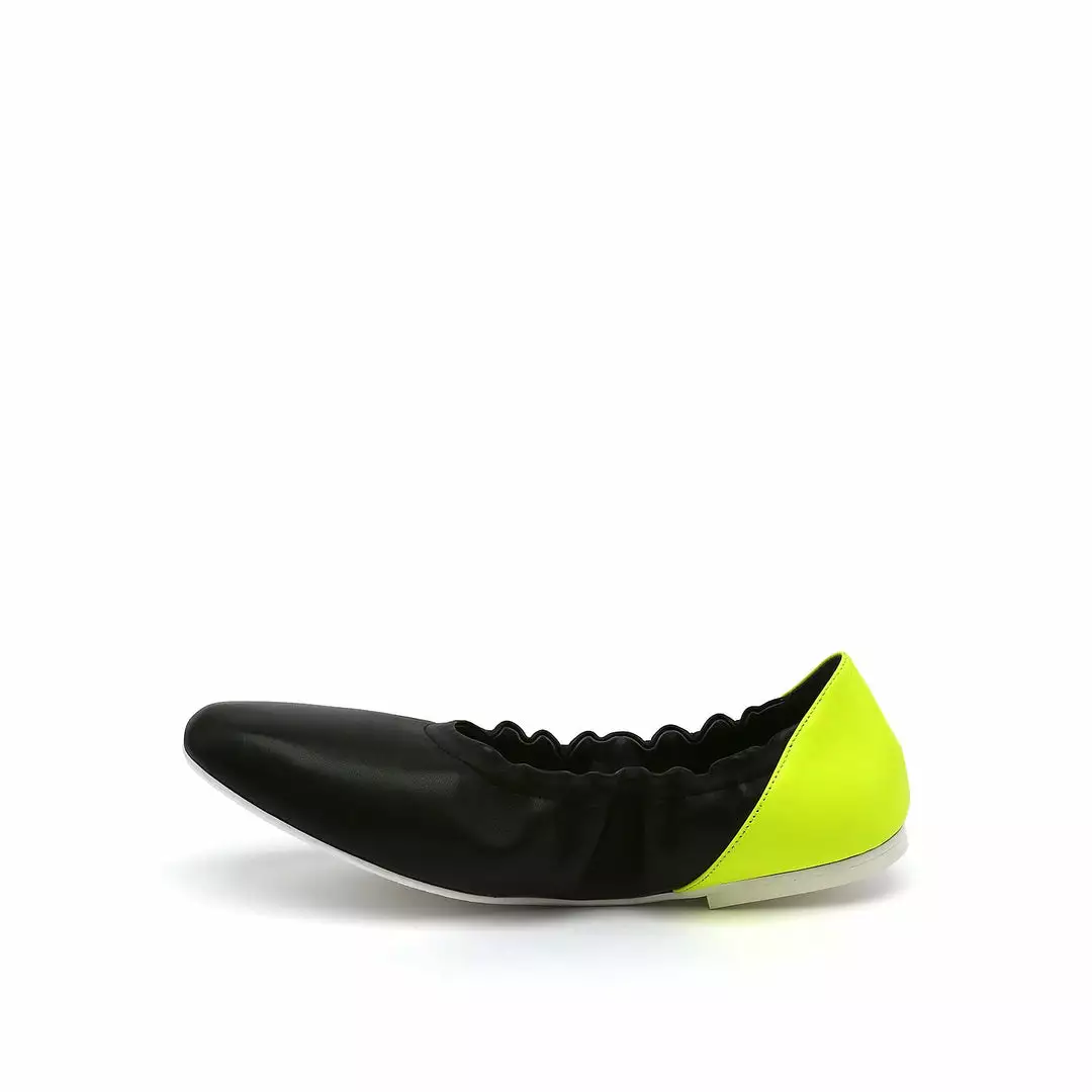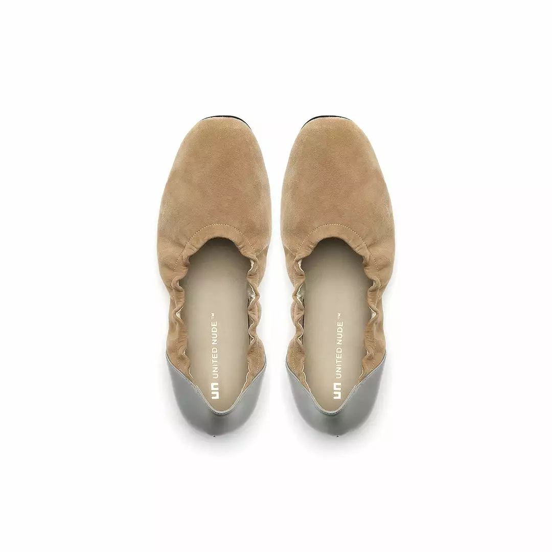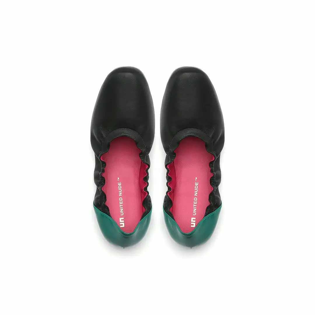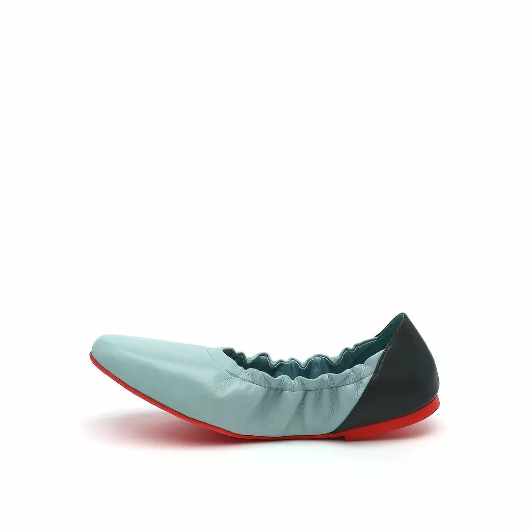 The Delta Ballet is a squared toe, bicolor flat constructed with buttery-soft leather.