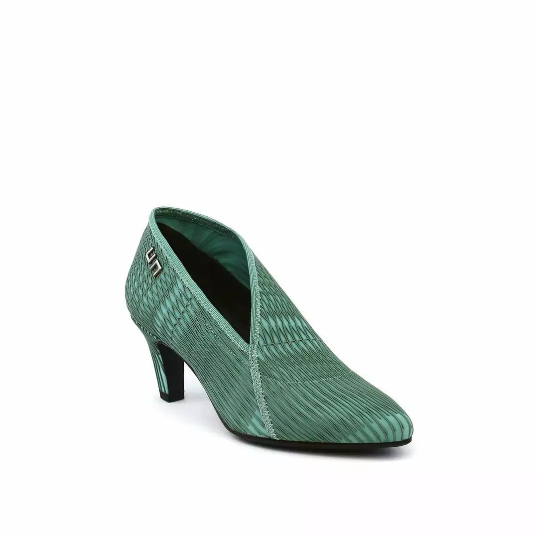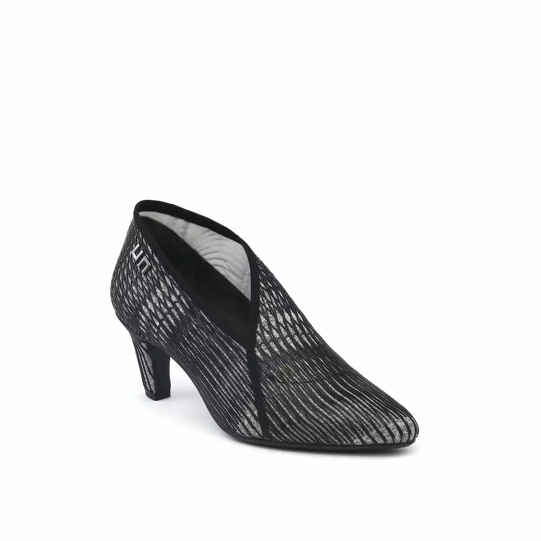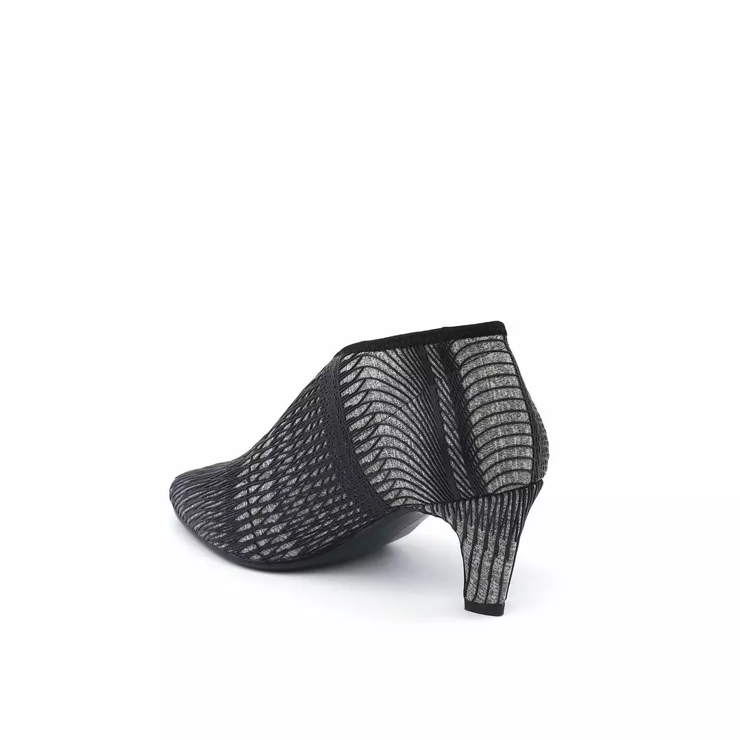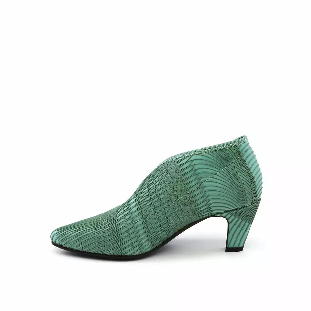 The Fold Lite Mid is a mid-heel ankle bootie with a soft almond toe and asymmetrical top line.