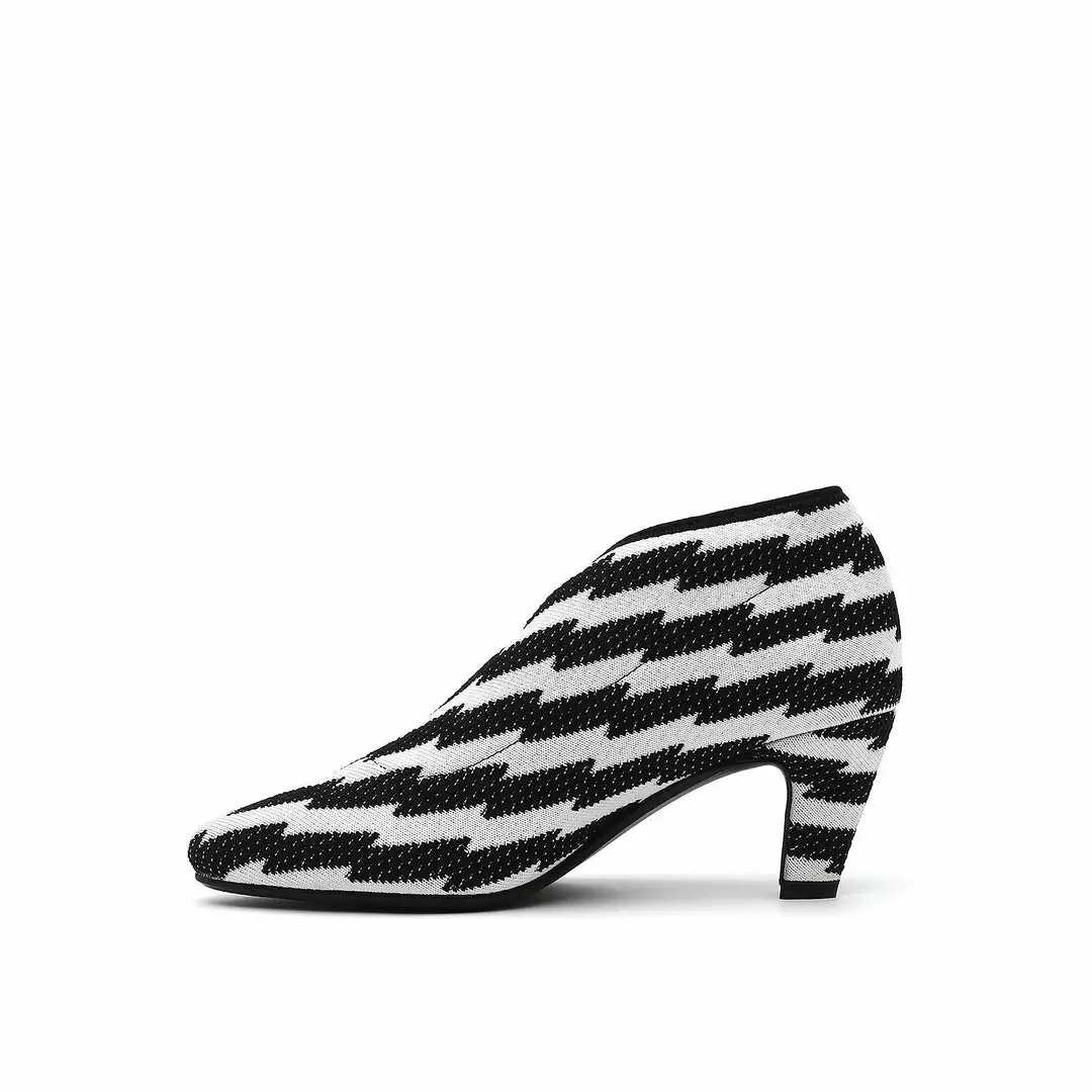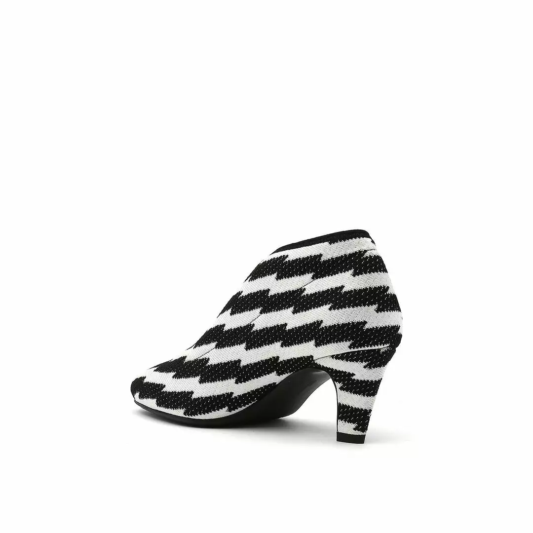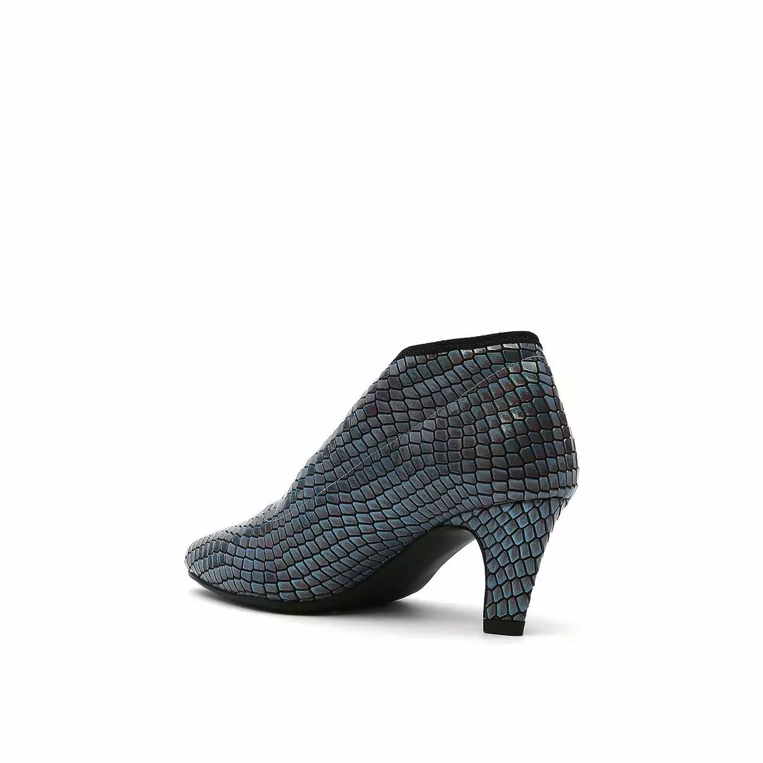 The Fold Lite Mid is a mid-heel ankle bootie with a soft almond toe and asymmetrical topline.
