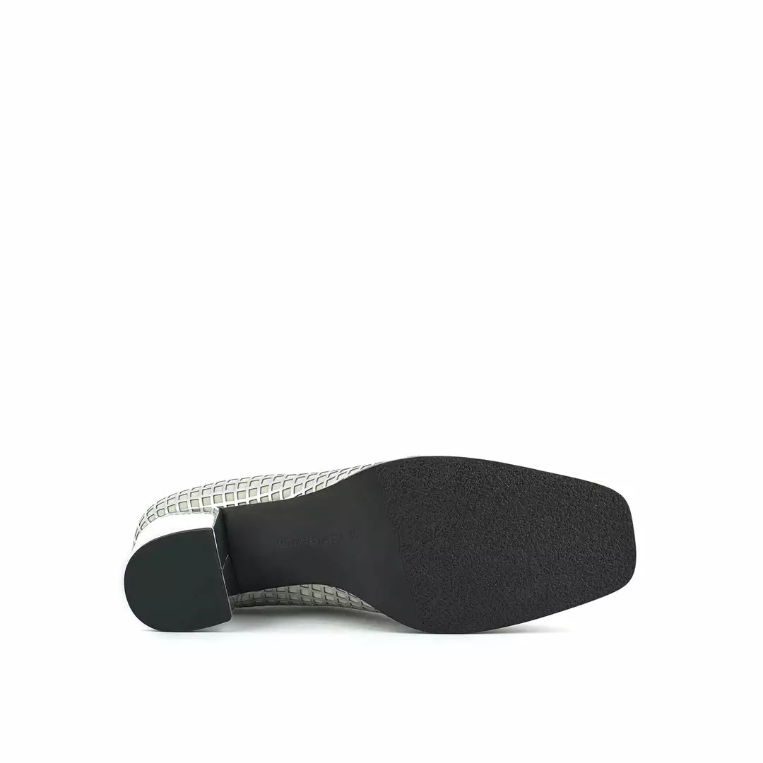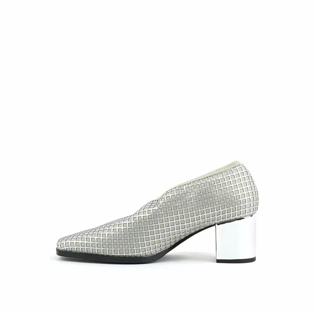 The Fold Stella Mid is an easy slip-on style with a soft square toe and an asymmetric design on a block heel. This style is the ultimate combination of comfort and smart design, using elasticized fabric and monochromatic embroidery for a modern design.