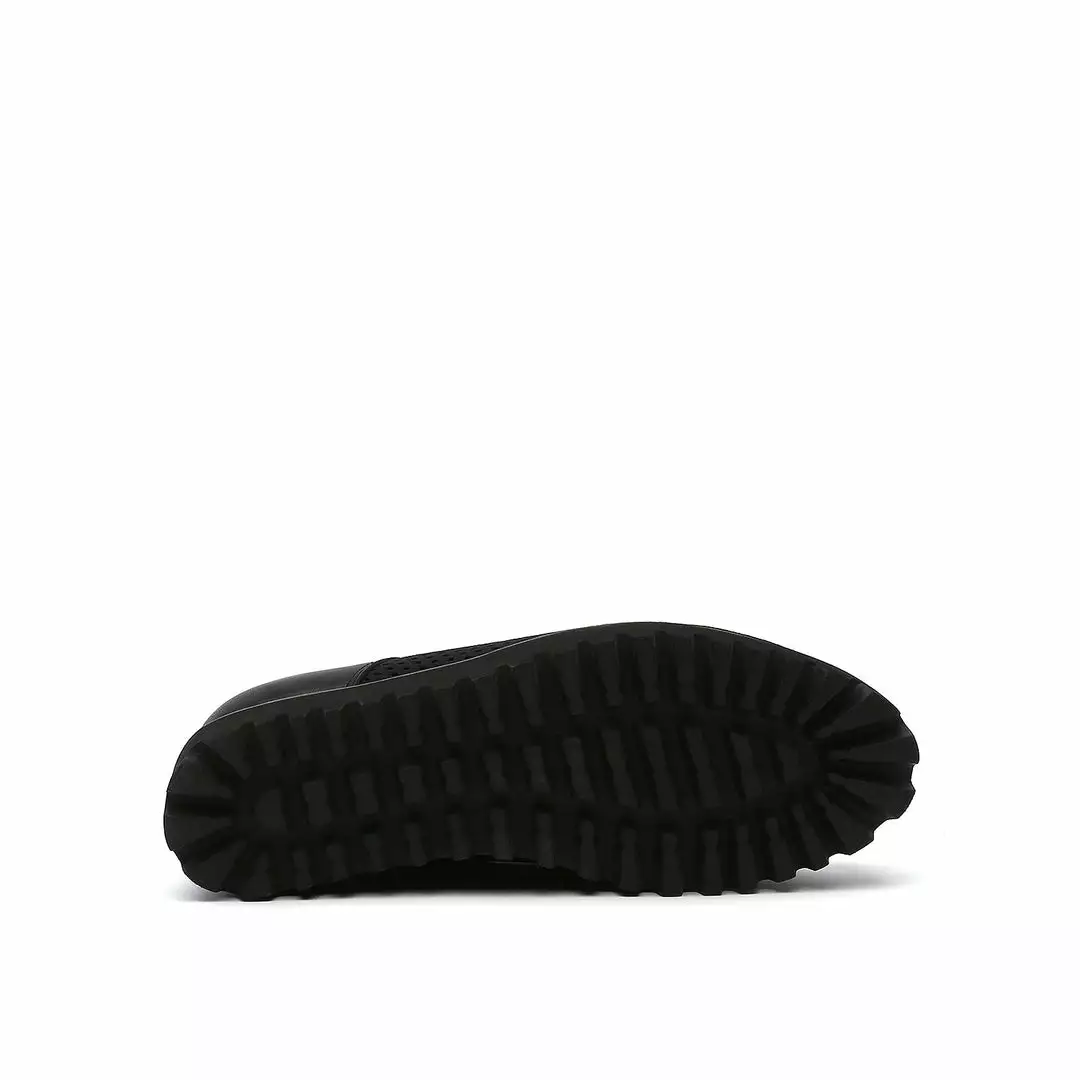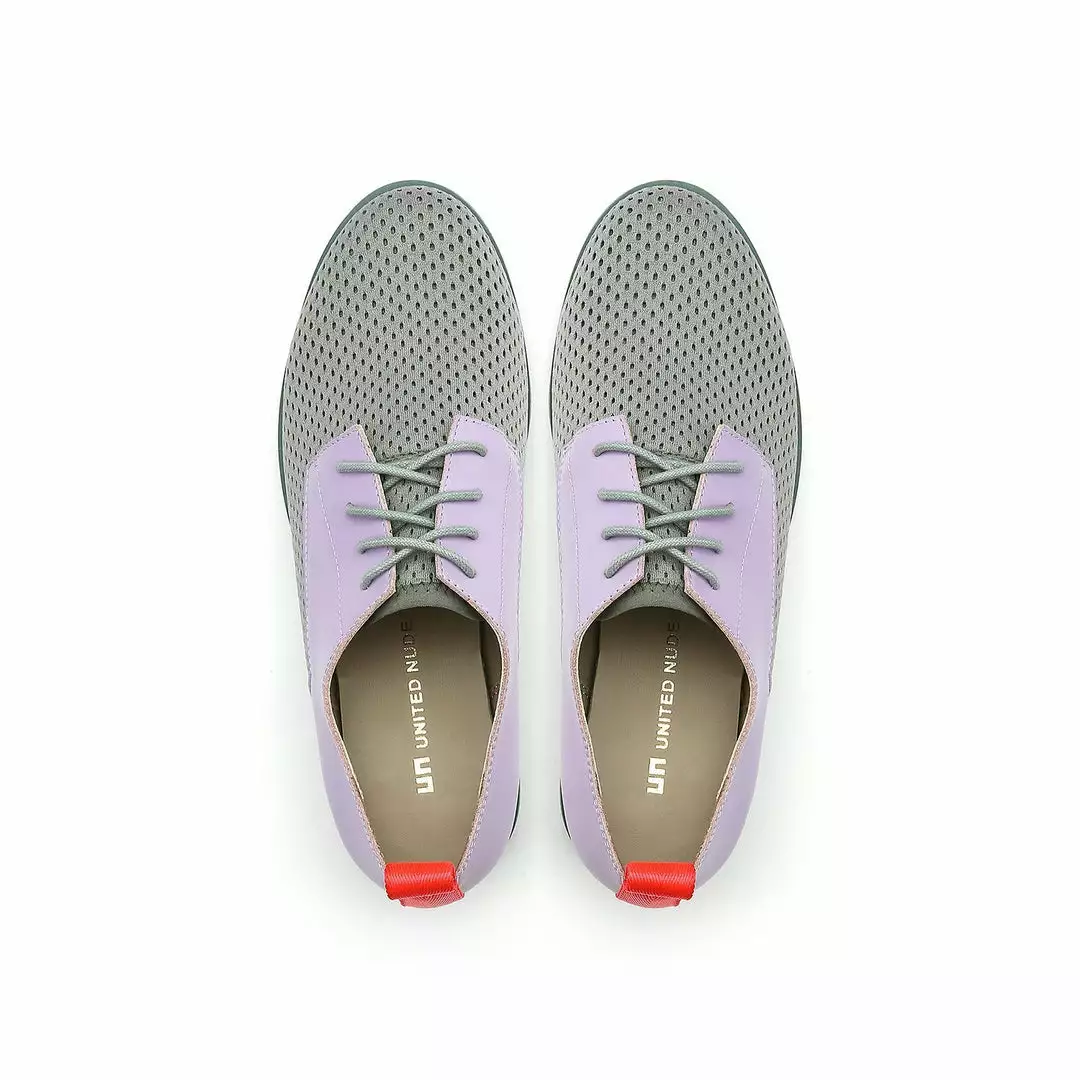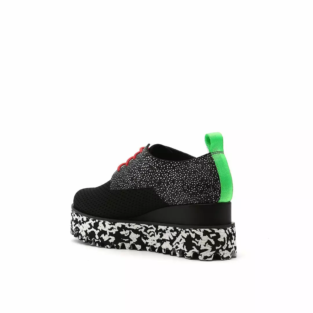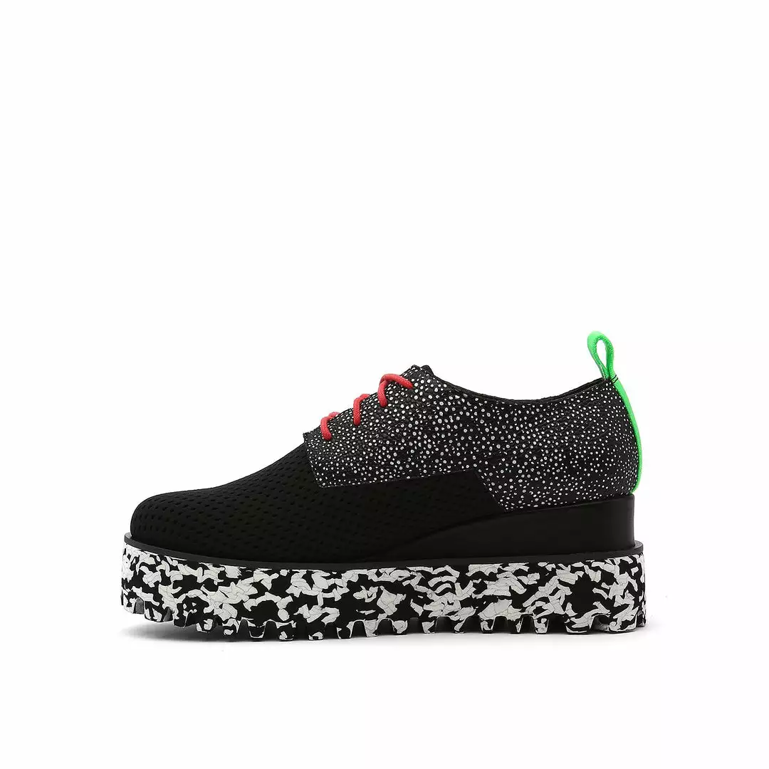 The Juko II is a flatform oxford shoe that is lifted by a low leather wrapped wedge and cleated outsole.