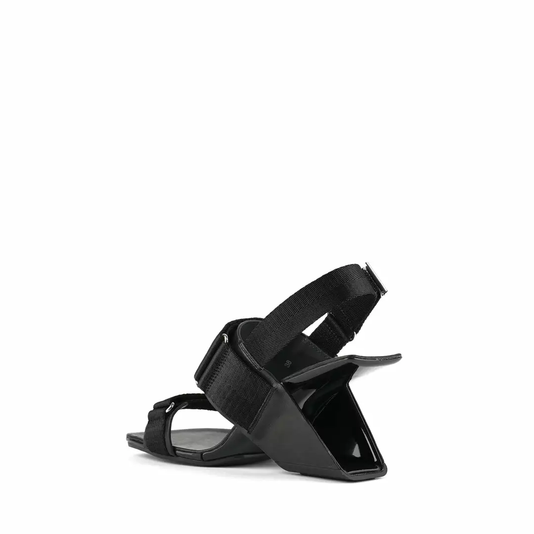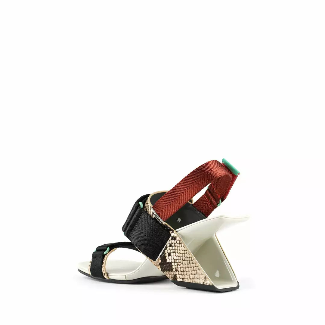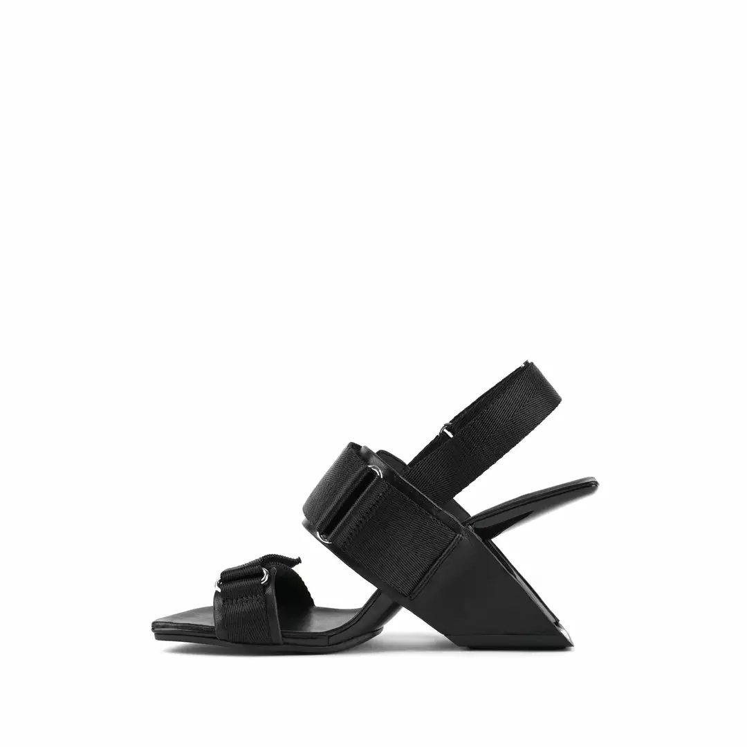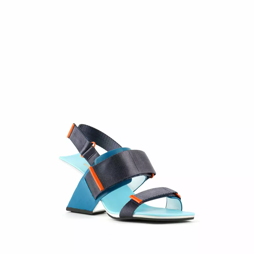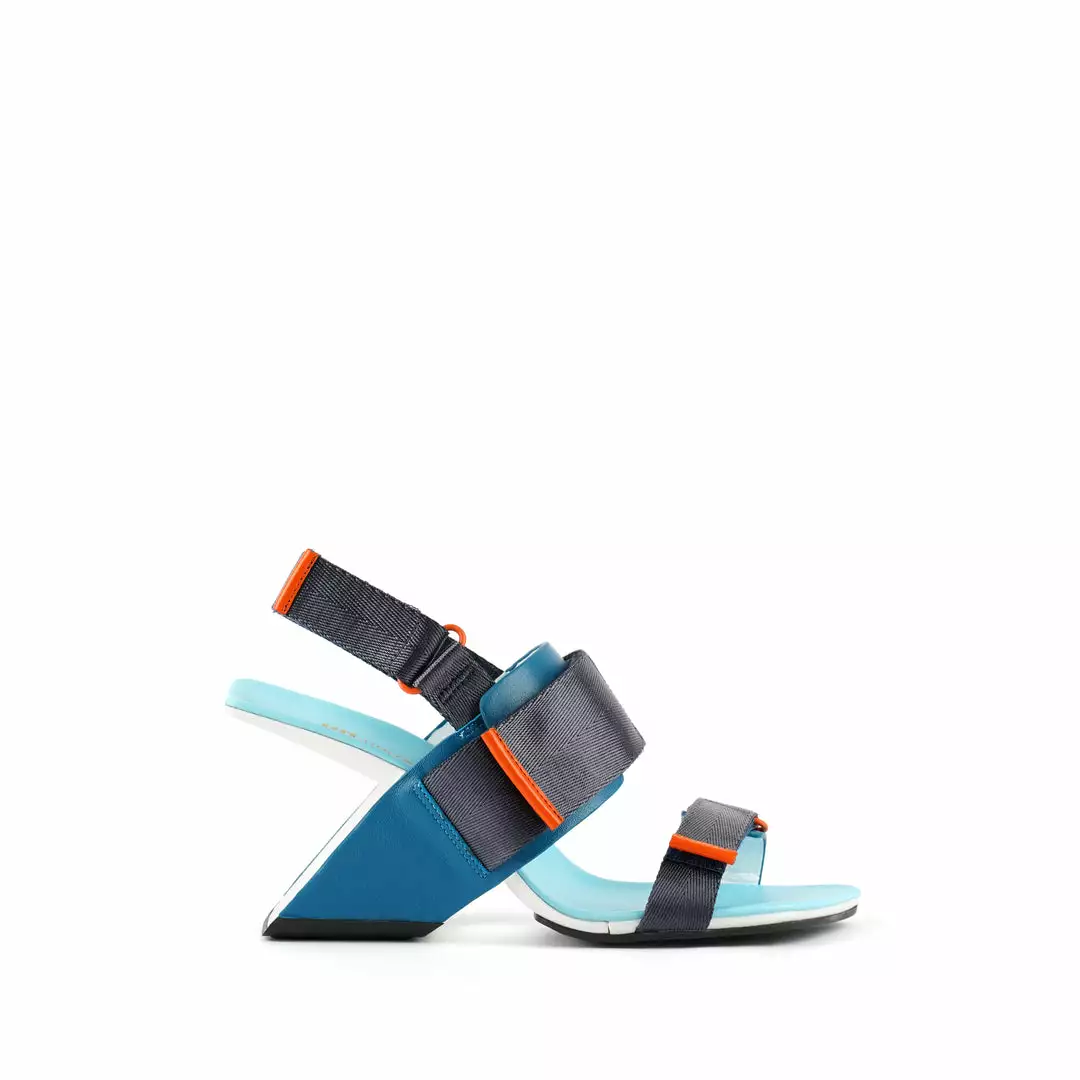 The Loop Run features UN’s signature cantilevered Loop Hi heel. Three adjustable nylon + velcro strap enclosures offer utility and an optimal fit to the updated minimalist sandal.