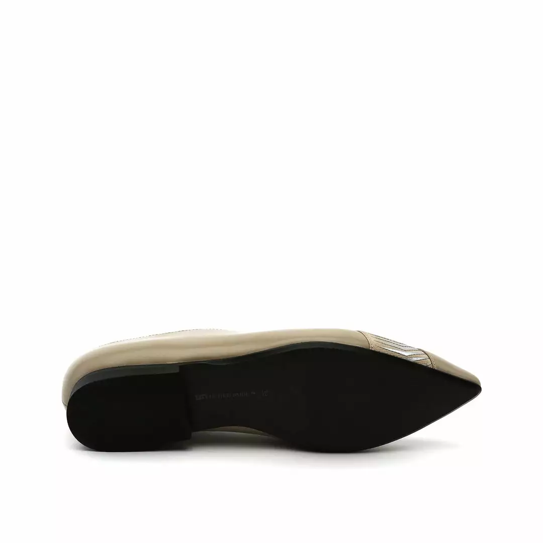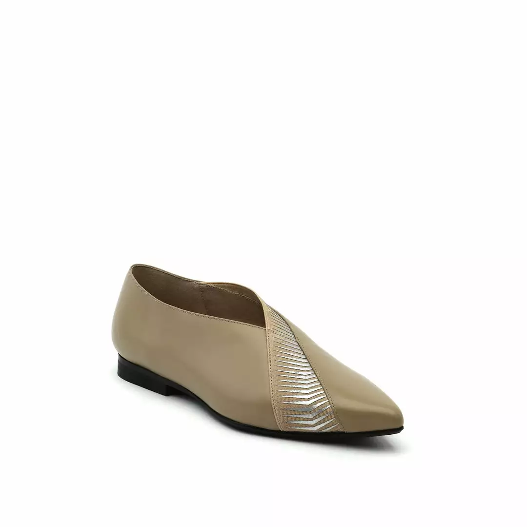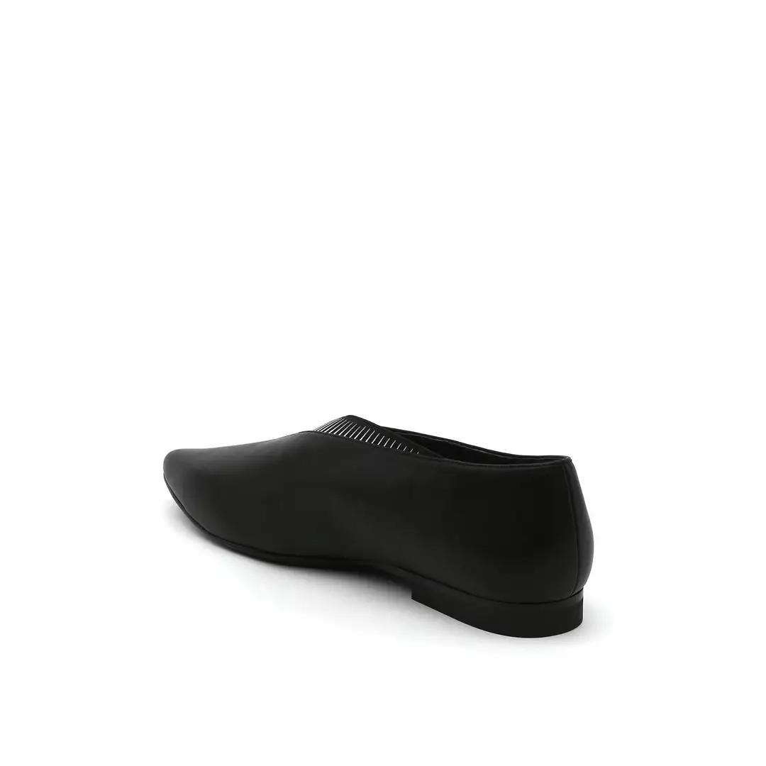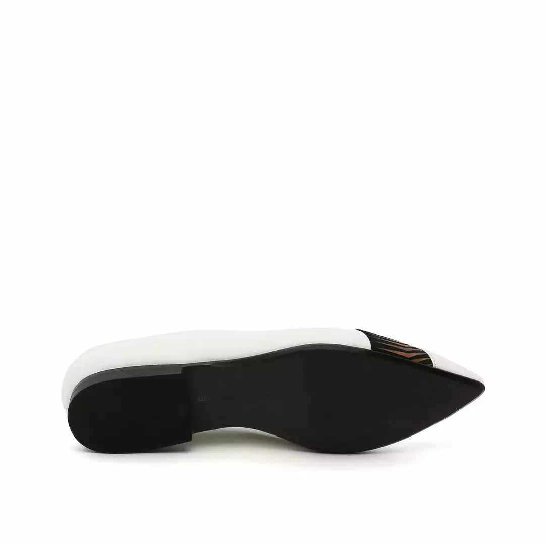 The Peek Pump Lo is a pointy-toe flat with an asymmetrical top line. The elastic accent packs a bold graphic punch.