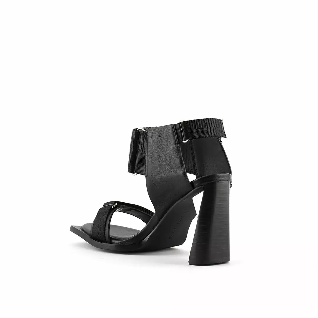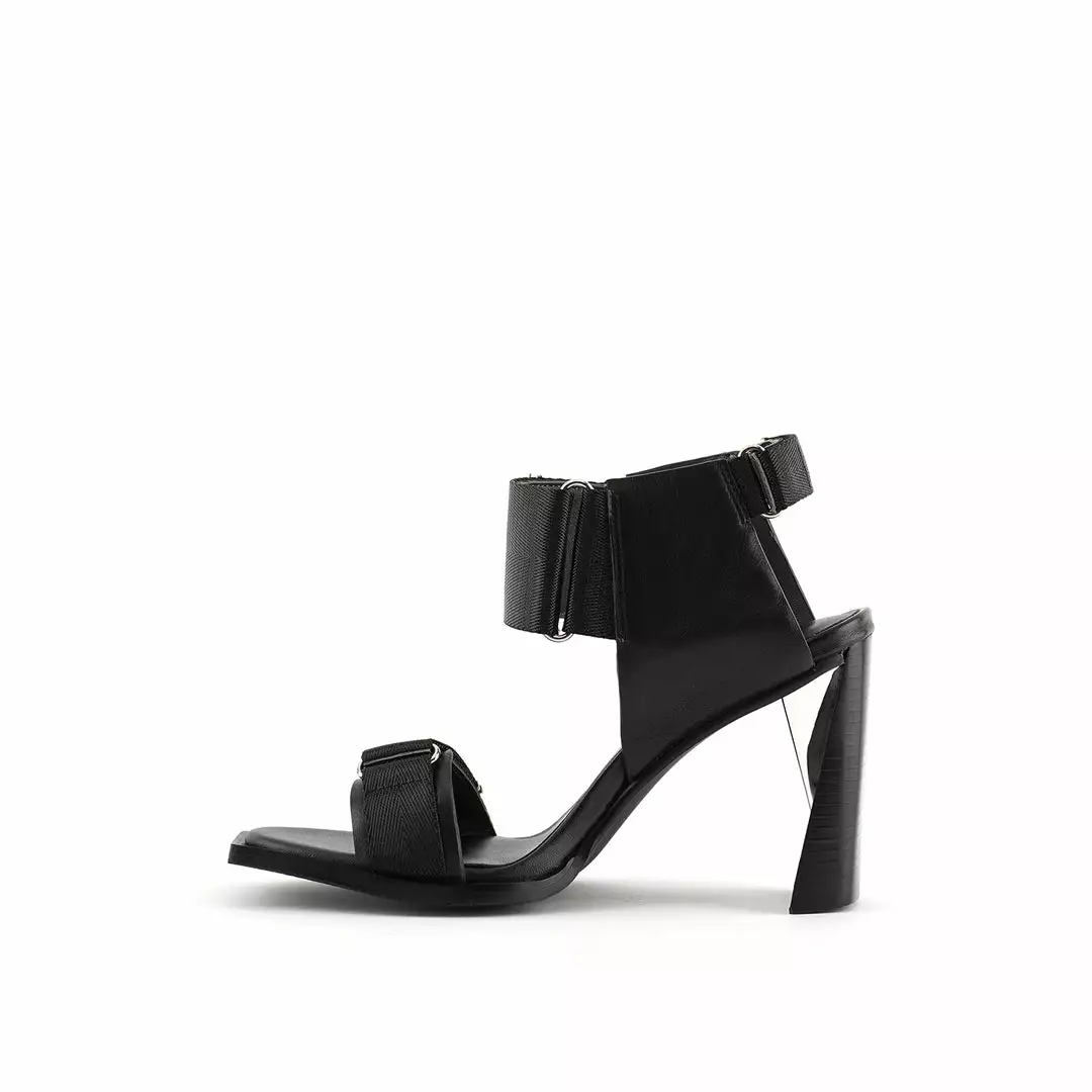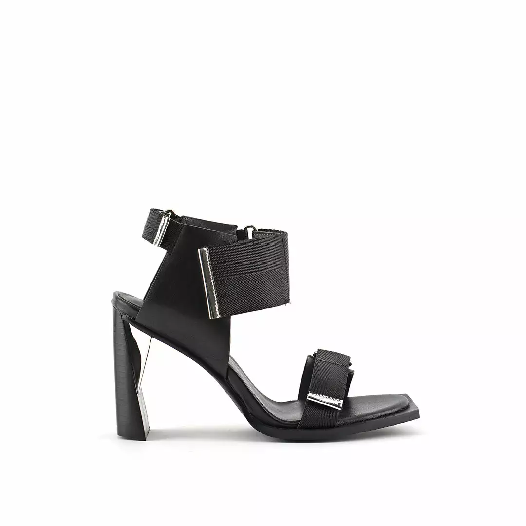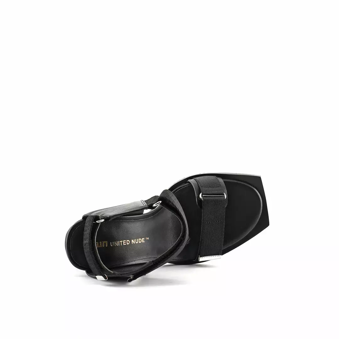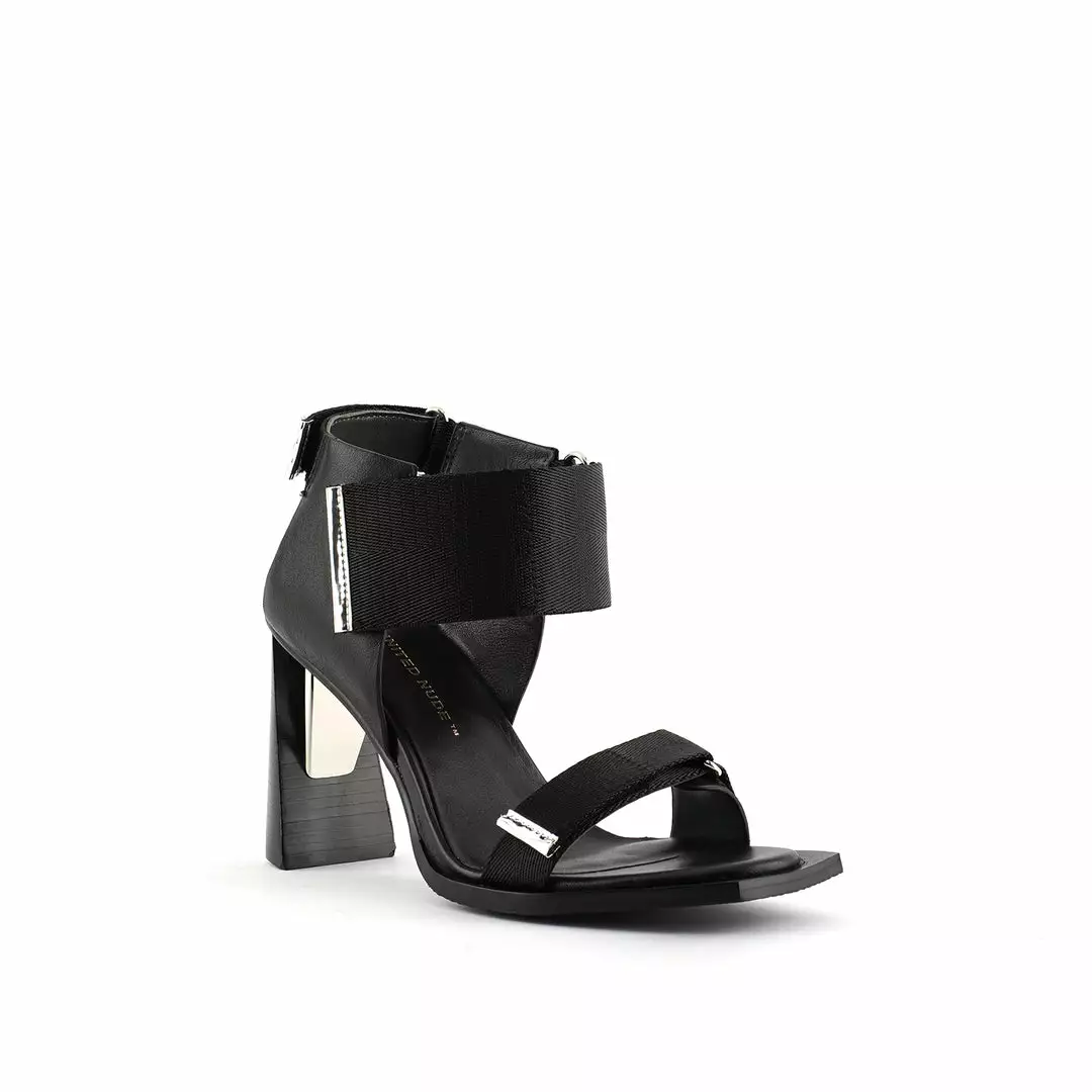 The Run Sandal Hi is a high heel slingback with a leather wrapped heel and sleek metallic accents. Three adjustable nylon straps with hook and loop velcro closures allow for easy on and off wear.