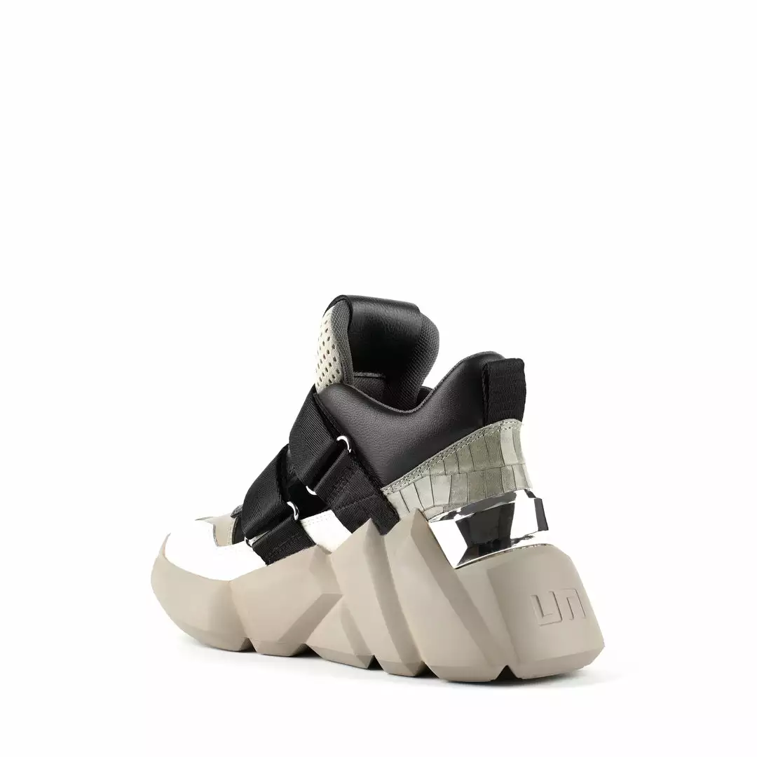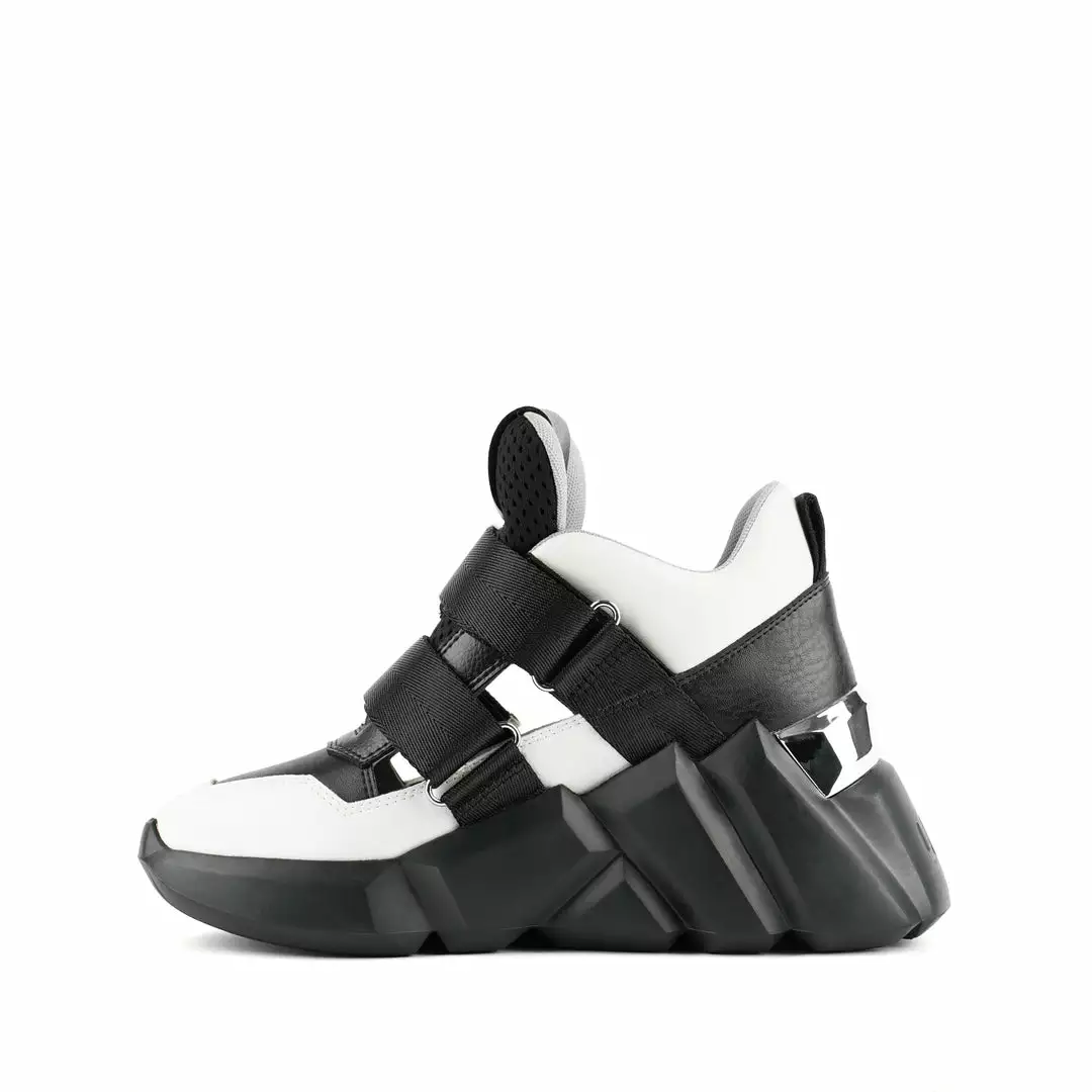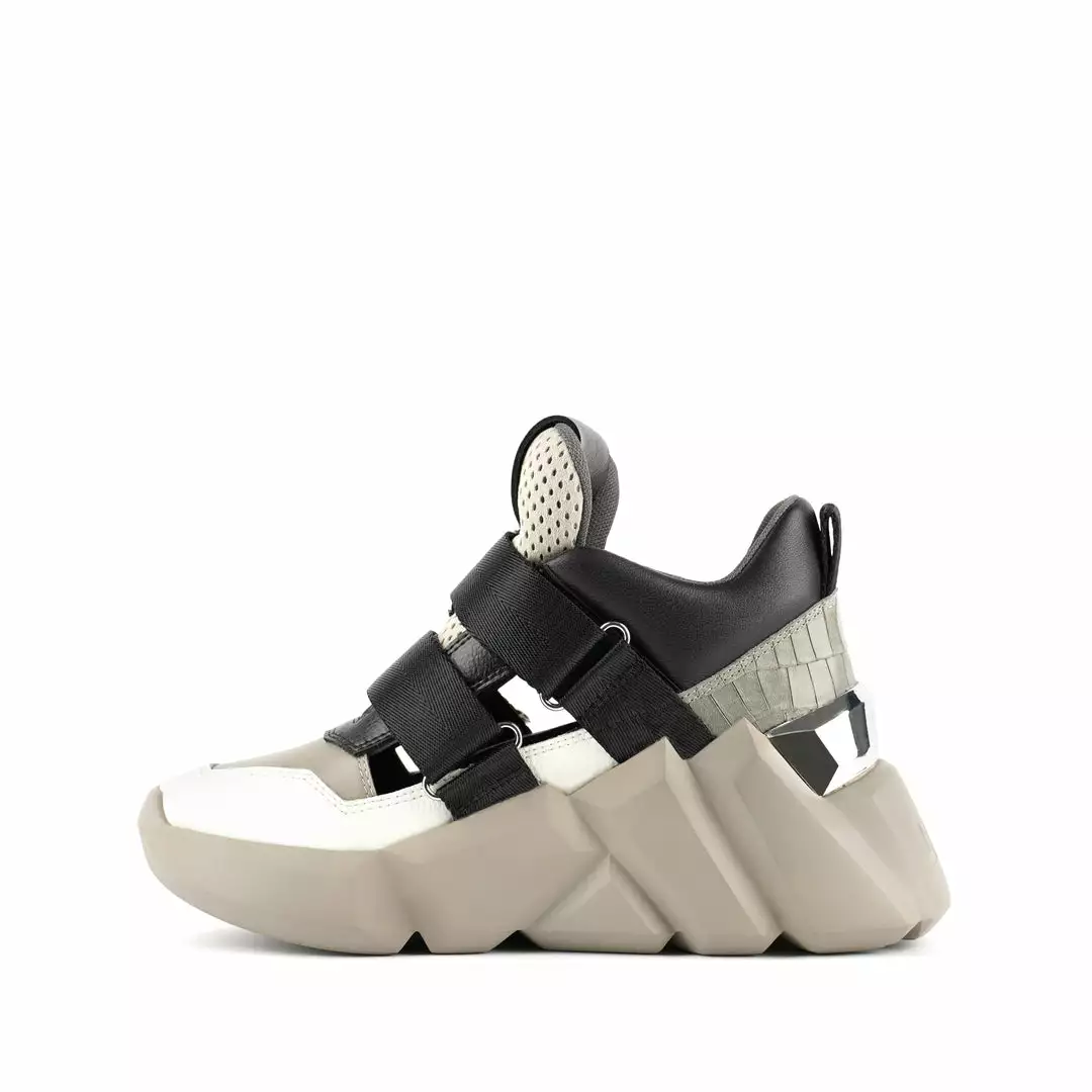 The Space Kick Summer is a cutout sneaker with a statement wedge sole. The chunky EPR outsole soars into the double velcro enclosure upper with breathable cutout details.
