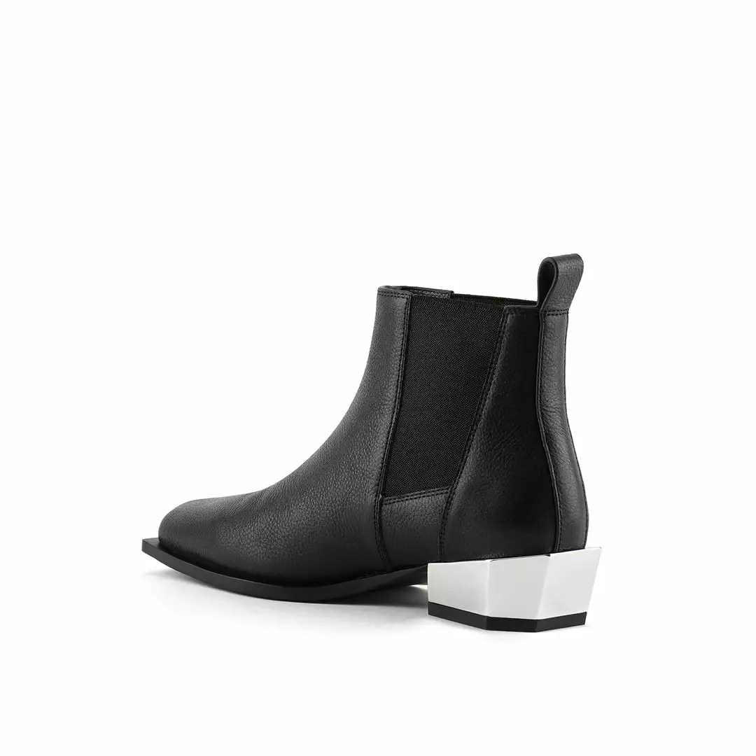 The Tetra Chelsea Mid is United Nude’s re-interpretation of the classic Chelsea boot. This style offers a recognizable upper and is accentuated with geometric panelling and block heel. A variety of statement and classic colours offer an edit for all lifestyles.