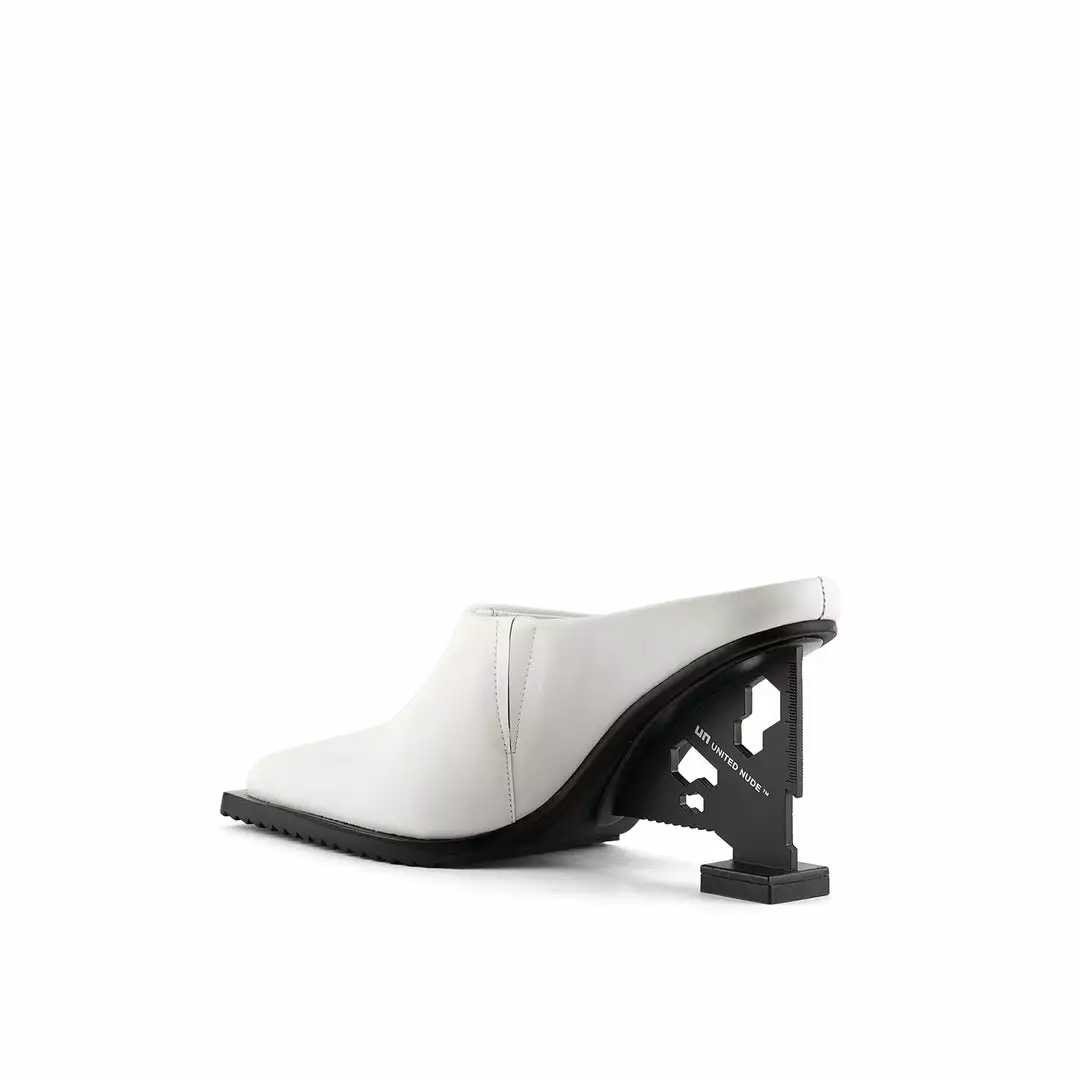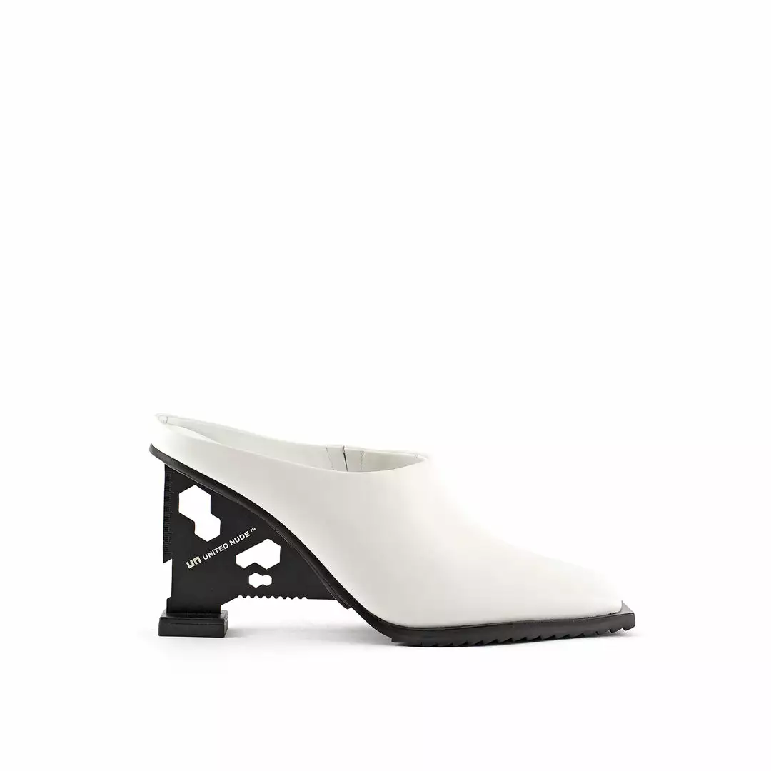 The Tool Mule is a sleek slip-on mid-heel, featuring a minimalist leather upper and the UN Tool heel. Inspired by your favorite multifunctional everyday accessories.