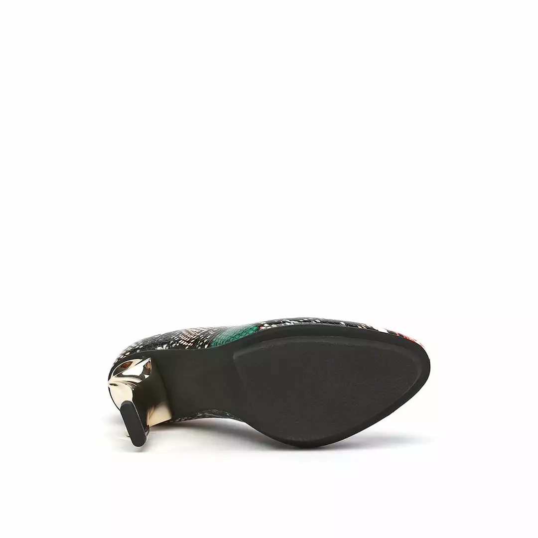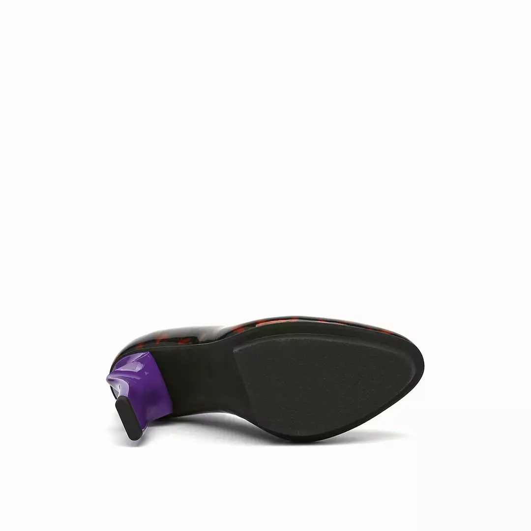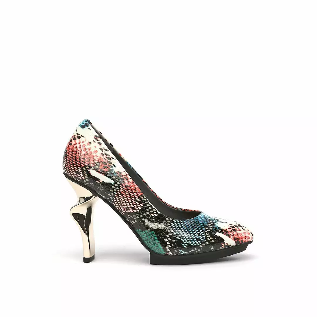 The Twirl Pump is a high heel pump. The classic pump silhouette is refreshed with a contemporary sculptural heel and rubber platform.